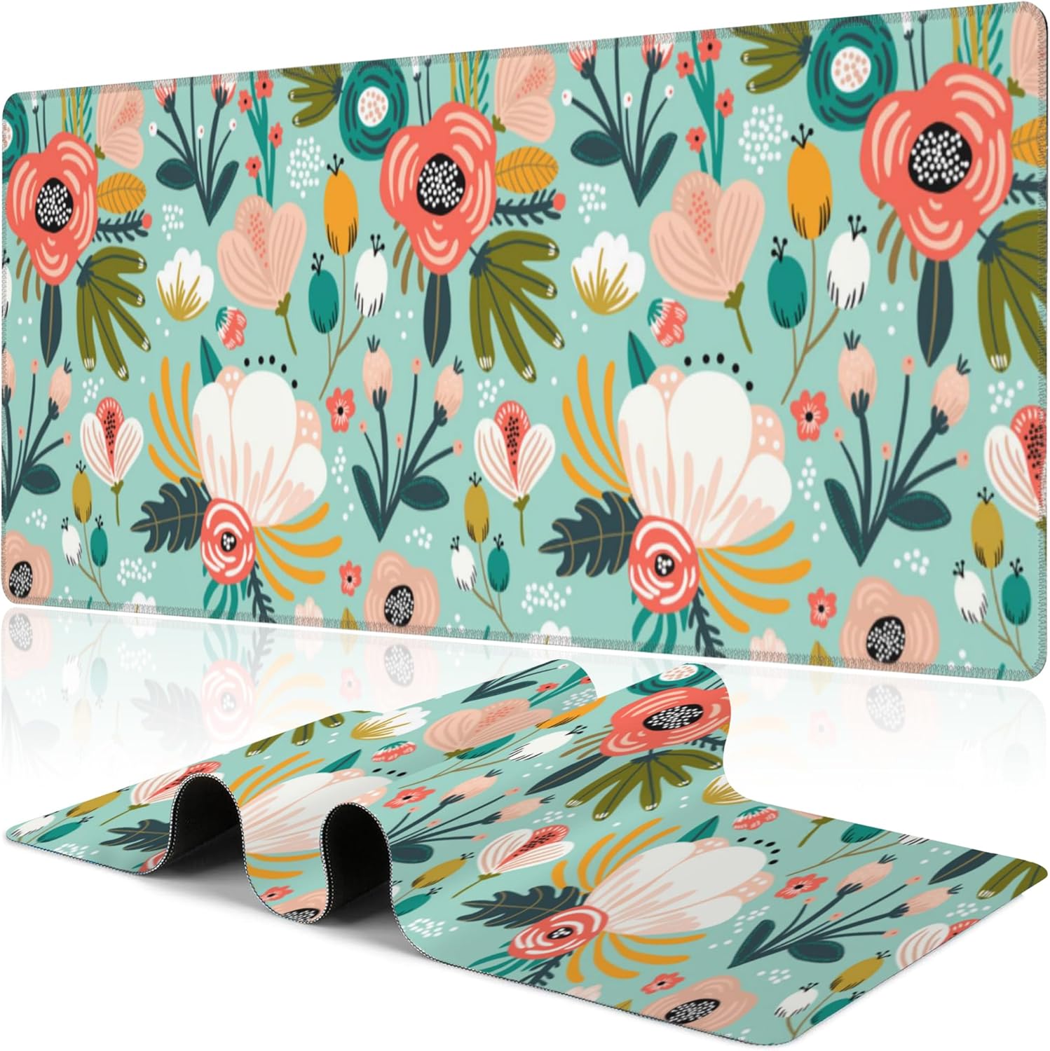 Colorful Flowers and Berries Desk Mat,Large Beautiful Floral Branches Gaming Keyboard Mouse Pad,Non-Slip Rubber Base Desk Pad Thick Stitched Edges Waterproof Mousepad Mouse Mat 31.5"x11.8"