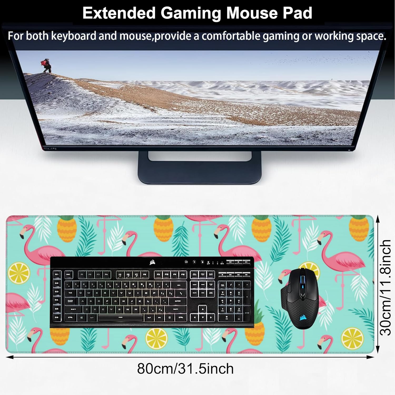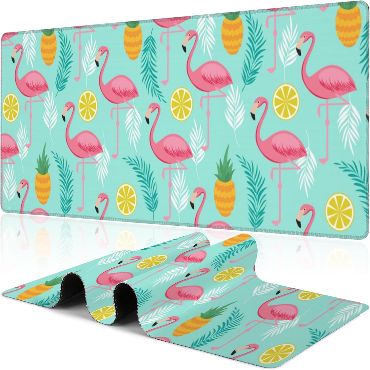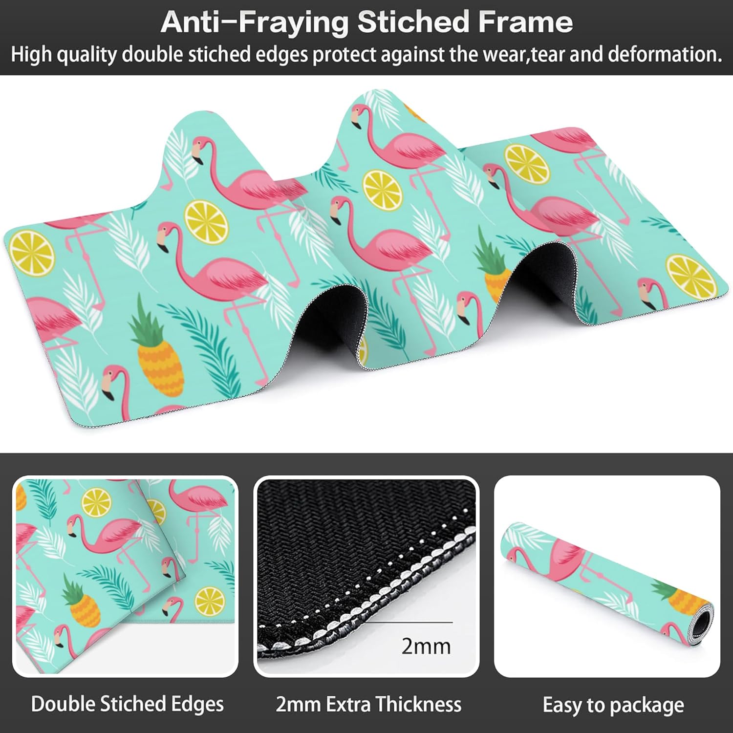 Pink Flamingo Desk Mat,Large Summer Flamingos Pineapples Tropical Leaves Gaming Keyboard Mouse Pad,Non-Slip Rubber Base Desk Pad Thick Stitched Edges Waterproof Mousepad Mouse Mat 31.5"x11.8"