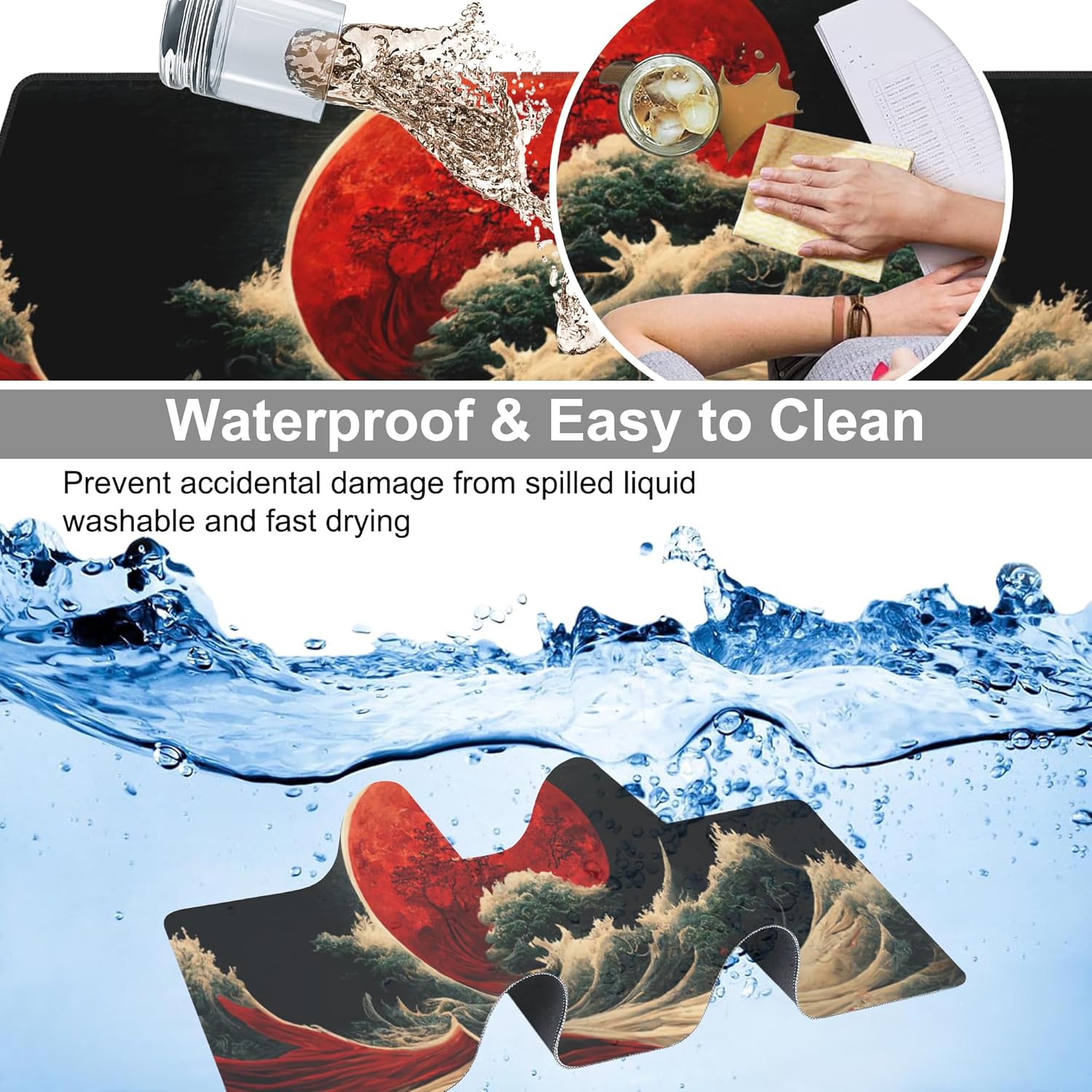 Red Moon Above The Sea Desk Mat,Large Chinese Style Landscape Gaming Keyboard Mouse Pad,Non-Slip Rubber Base Desk Pad Thick Stitched Edges Waterproof Mousepad Mouse Mat 31.5"x11.8"