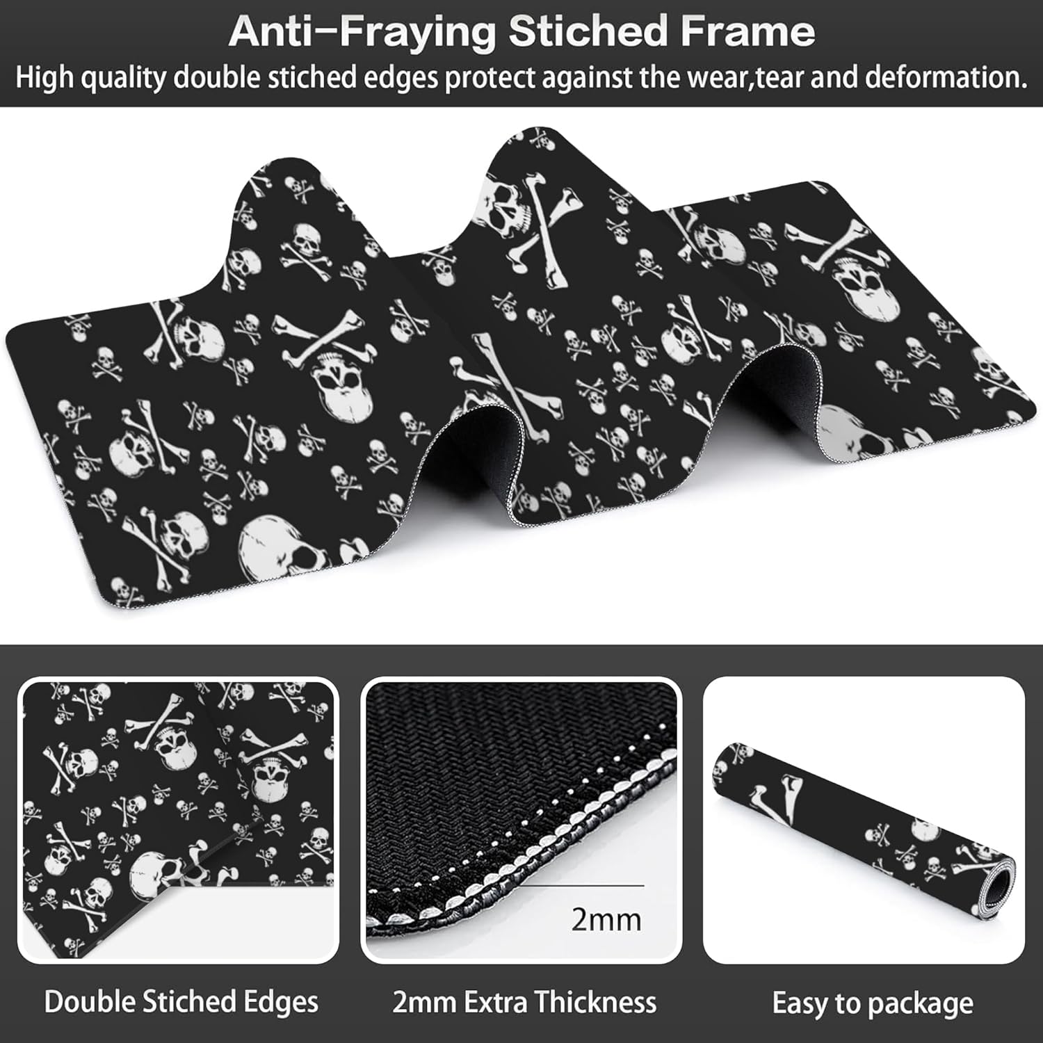 Skull Head Desk Mat,Large Pirate Skull Crossbones Gaming Keyboard Mouse Pad,Non-Slip Rubber Base Desk Pad Thick Stitched Edges Waterproof Mousepad Mouse Mat 31.5"x11.8"