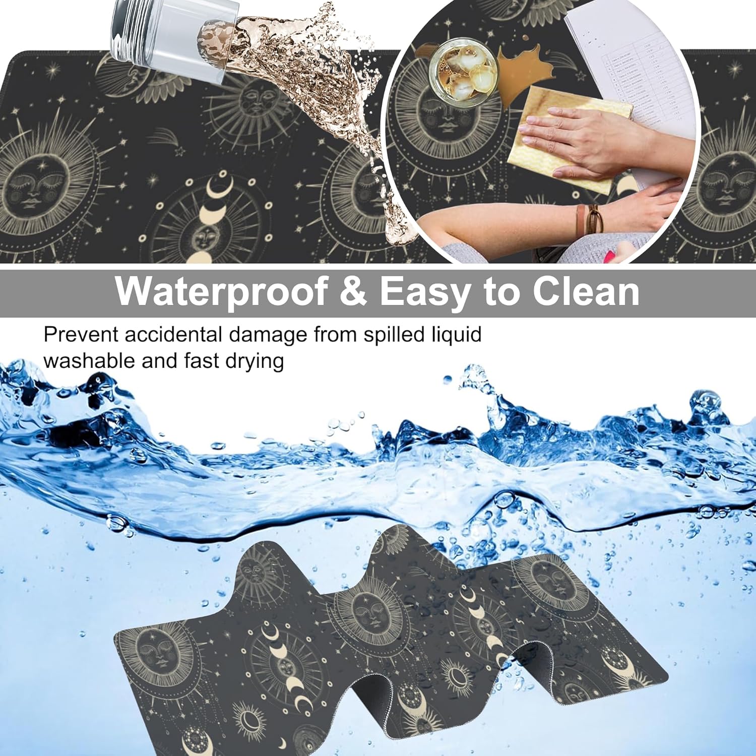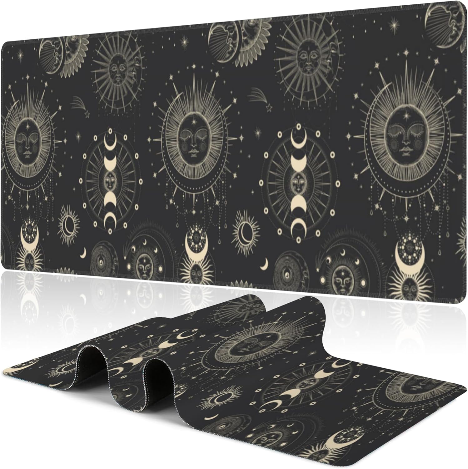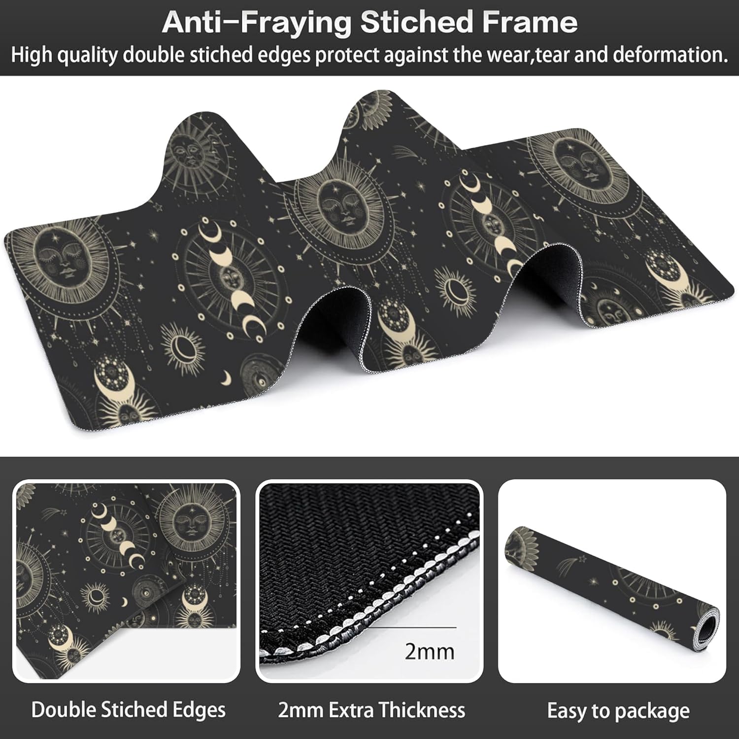 Phase of The Moon Desk Mat,Large Moon Phase Changes Gaming Keyboard Mouse Pad,Non-Slip Rubber Base Desk Pad Thick Stitched Edges Waterproof Mousepad Mouse Mat 31.5"x11.8"