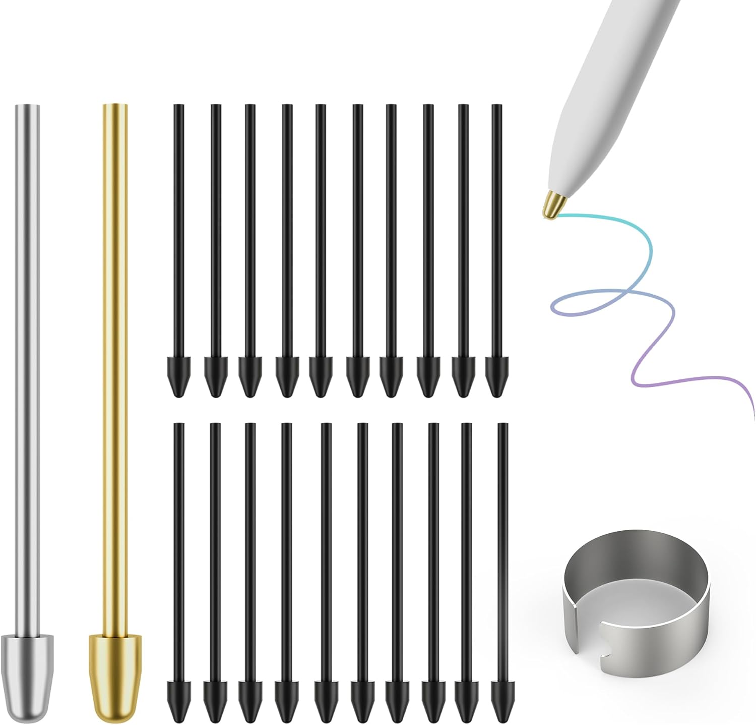 for Remarkable 2 Pen Tips,AHBTEYM Metal Tips,Replacement Nibs Refill Accessories for Remarkable 1/2 Stylus/Marker Plus/Scribe Pen-22Pcs(Gold/Sirvel)