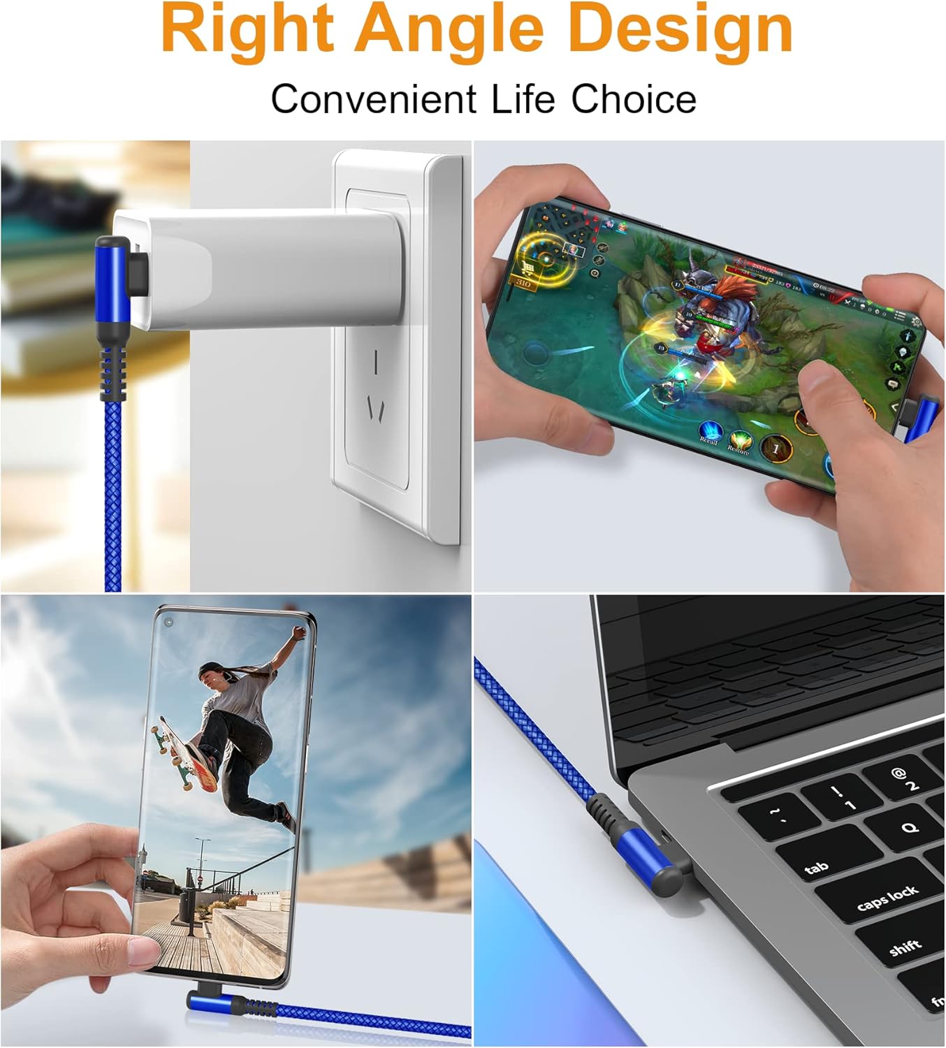 - [Upgraded USB-C Right Angle Design]: This right angle type c charging cable fast charge with an innovative 90 degrees " L " design. It's user-friendly design more convenient and comfortable for playing games, watching videos, reading e-books when you charging.