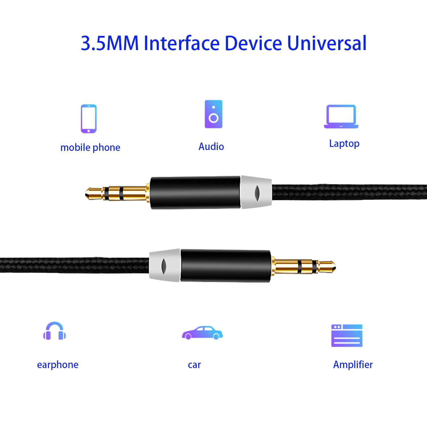 - 3.5mm Male to Male Aux Cord Which compatible with any device with a 3.5mm headphone jack including a headset with Microphone.Double-braided nylon audio cables adding to the durability and tangle free.