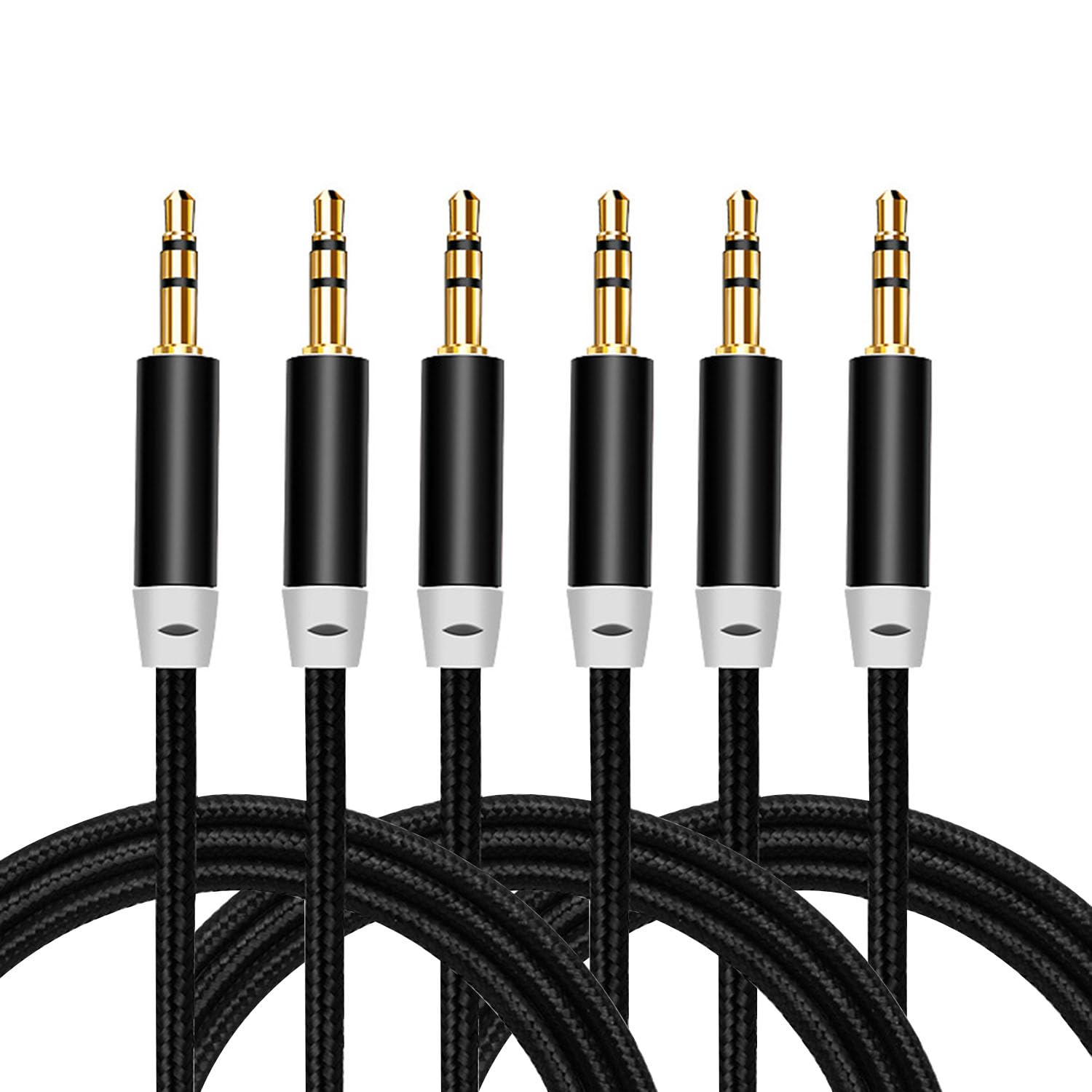 3.5mm Nylon Braided Stereo Audio Cable,(3 Pack) 4.9ft/1.5m Male to Male Aux Cord Audio Cord Compatible iPhones, iPads and Other 3.5mm DC Plug Port Device (Black)
