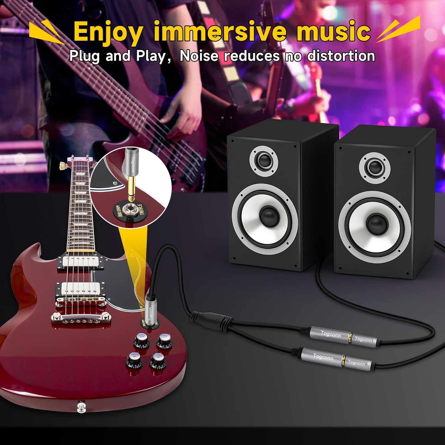 - Wide Compatibility : Togconn 6.35mm TS male to dual 6.35mm TS female Y Patch Cord ideal for most professional audio and home audio devices. Compatible with amplifier, microphone, mixing table, speaker, music keyboard, HiFi system, home theater equipment, guitar, electric piano, or AV receiver.