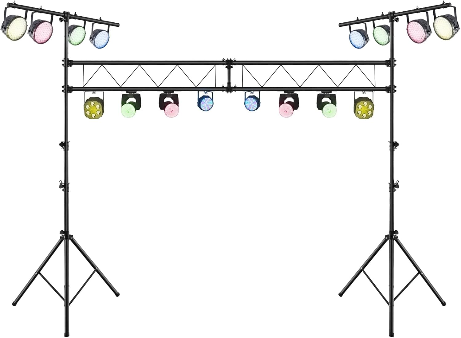 - 【32 light Capacity】With its large capacity T bar, and 10 ft long center truss, our DJ truss system is designed to hold up to 32 lights and provide the stunning visual effect of displaying multiple lights to wow your audience. This is an extremely durable and long-lasting trussing system, perfect for all your stage lighting needs.