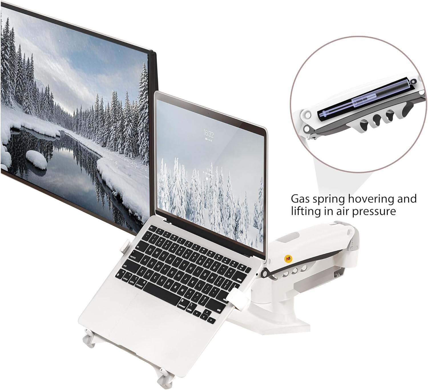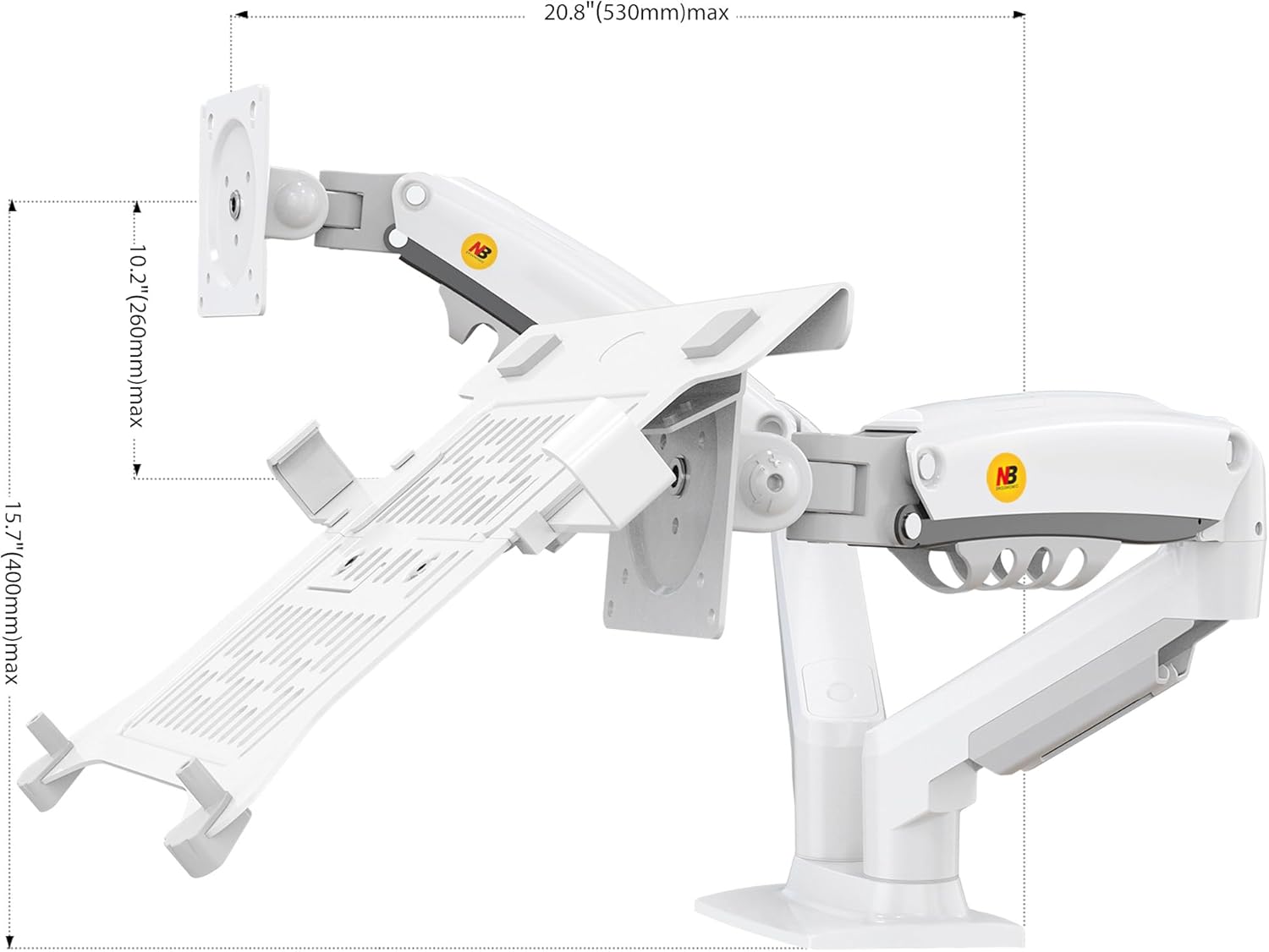 NB North Bayou Laptop Mount with Adjustable Tray for 10-17”Notebook, Full Motion Arm with VESA Plate for 17-30”Monitor,Clamp-on Grommet Mounting F160-FP (White)