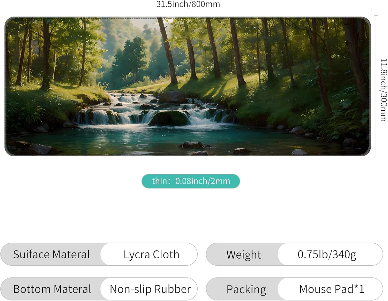 - Large Size - 31.5*11.8*0.08 inch(800*300*2mm)makes it provide larger area fits both for keyboard and mouse.
