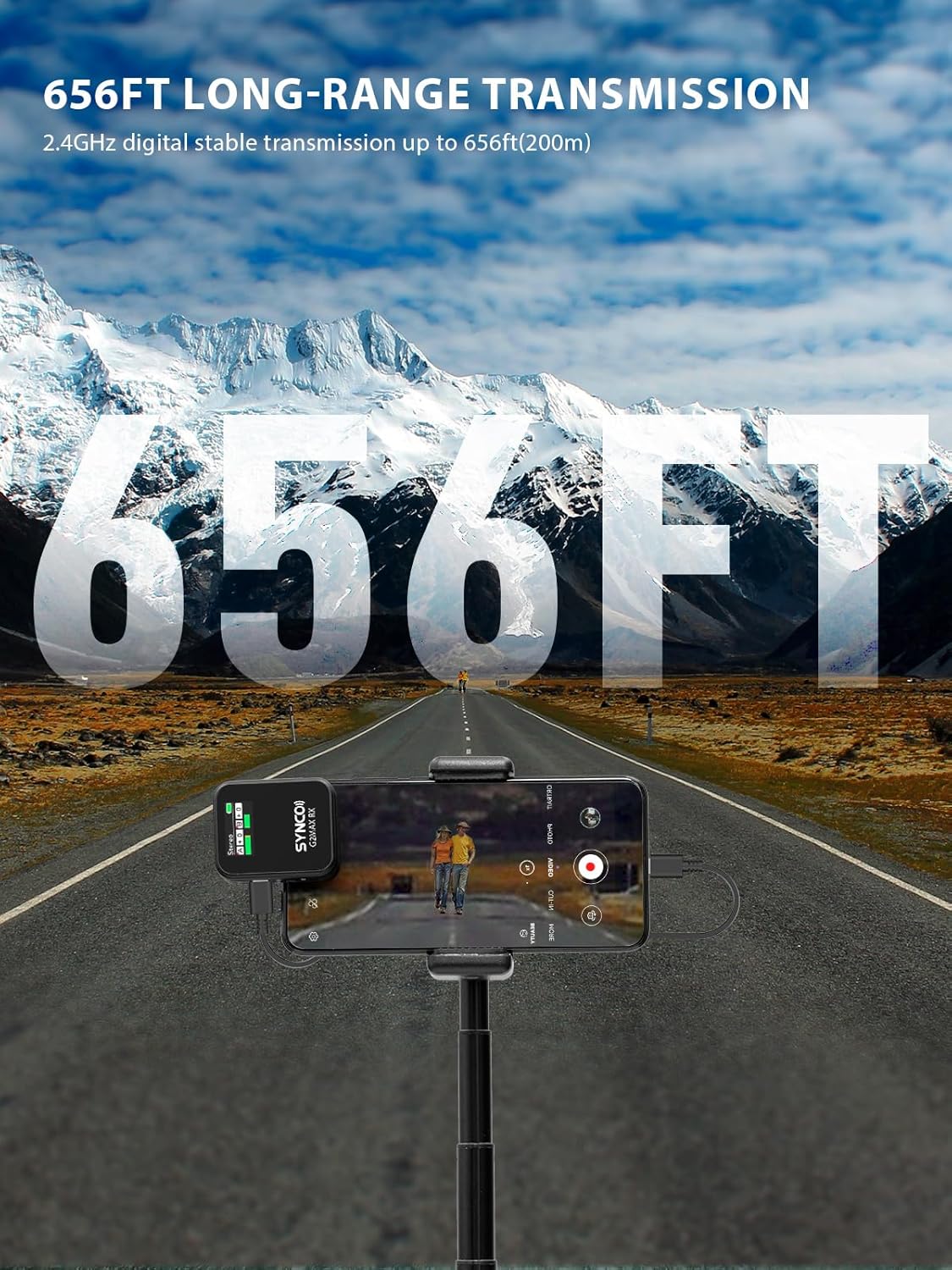 - Universal Mic with 656 ft/200 m Stable Transmission: Boasting secure 2.4GHz digital transmission and Syncoder Tech, G2(A2) MAX wireless microphones avoids the confusing domain of UHF and allows up to 656 ft/200 m (LOS) transmission range. Integrated with new upgraded G2 series DSP chip, 3.5 mm TRRS/TRS cable included, G2(A2)MAX wireless mic delivers clear crystal and distortion-free sound for your DLSR camera, smartphone, pc, or tablet ect