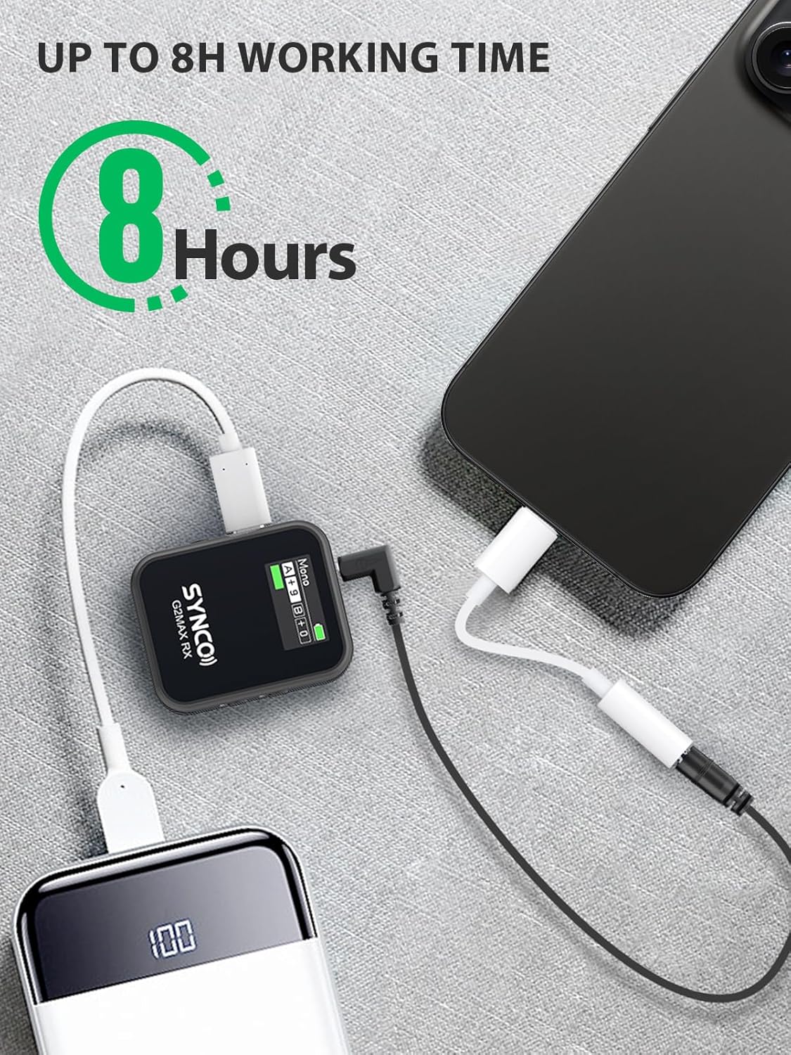- Built-in Recording, Capture Videos Worryfree: No complicated operations are required, TX and RX pair automatically when powered on, and then you can start recording. SYNCO G2(A2) MAX wireless lavalier mic system includes memory in its two transmitters for keeping a copy of the recording in case the wireless connection is bad or other circumstances lead to a decrease in audio recording quality. Long press the internal storage recording button on TX for 3 seconds to turn on or off the internal storage recording function. Greatly improves sound security when taking a video or interview