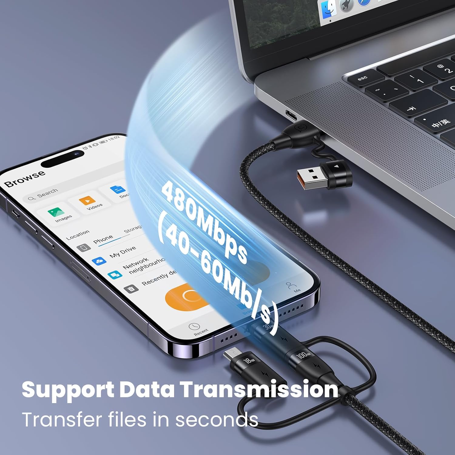 - [480Mbps Data Transfer]- This multi charger cable can charge and transmit data simultaneously,with a theoretical transfer rates of up to 480Mbps, allowing you to transfer 1GB of movies, music, documents, or entire photo libraries in less than one minute.