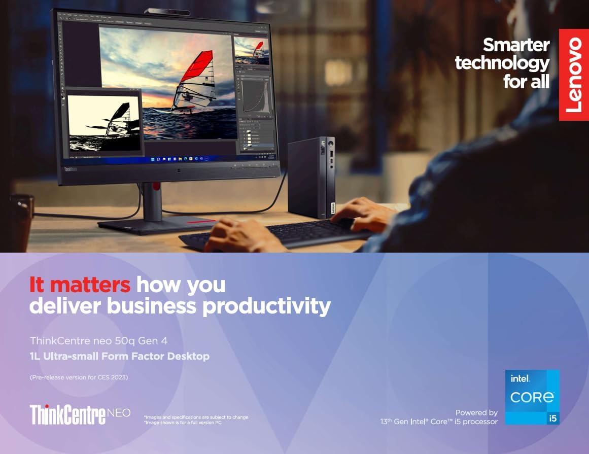 Lenovo ThinkCentre 50q Gen 4 Business Mini Desktop, 13th Gen Intel Core i5-13420H, 16GB RAM, 1TB PCIe SSD, Display Port, RJ-45, HDMI, Wi-Fi 6, Windows 11 Pro, Black