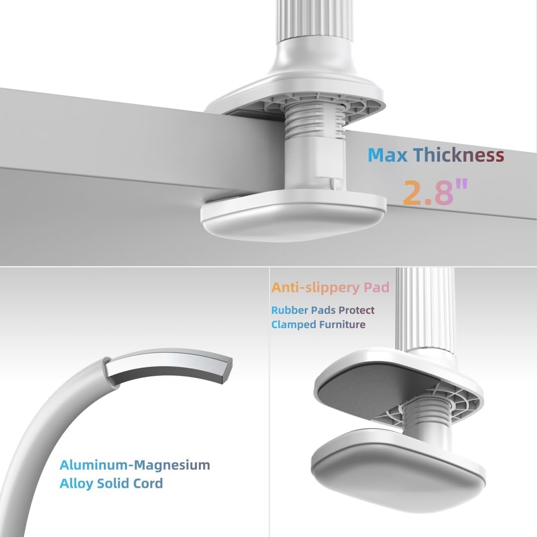 K-MT【38.7inch/98cm】 Tablet Phone Holder Table Desk Gooseneck Mount, Mount Holder Clip with Grip Flexible Long Arm Compatible for ipad iPhone/Switch/Samsung Tabs/Kindle Fire HD K-MT (White)