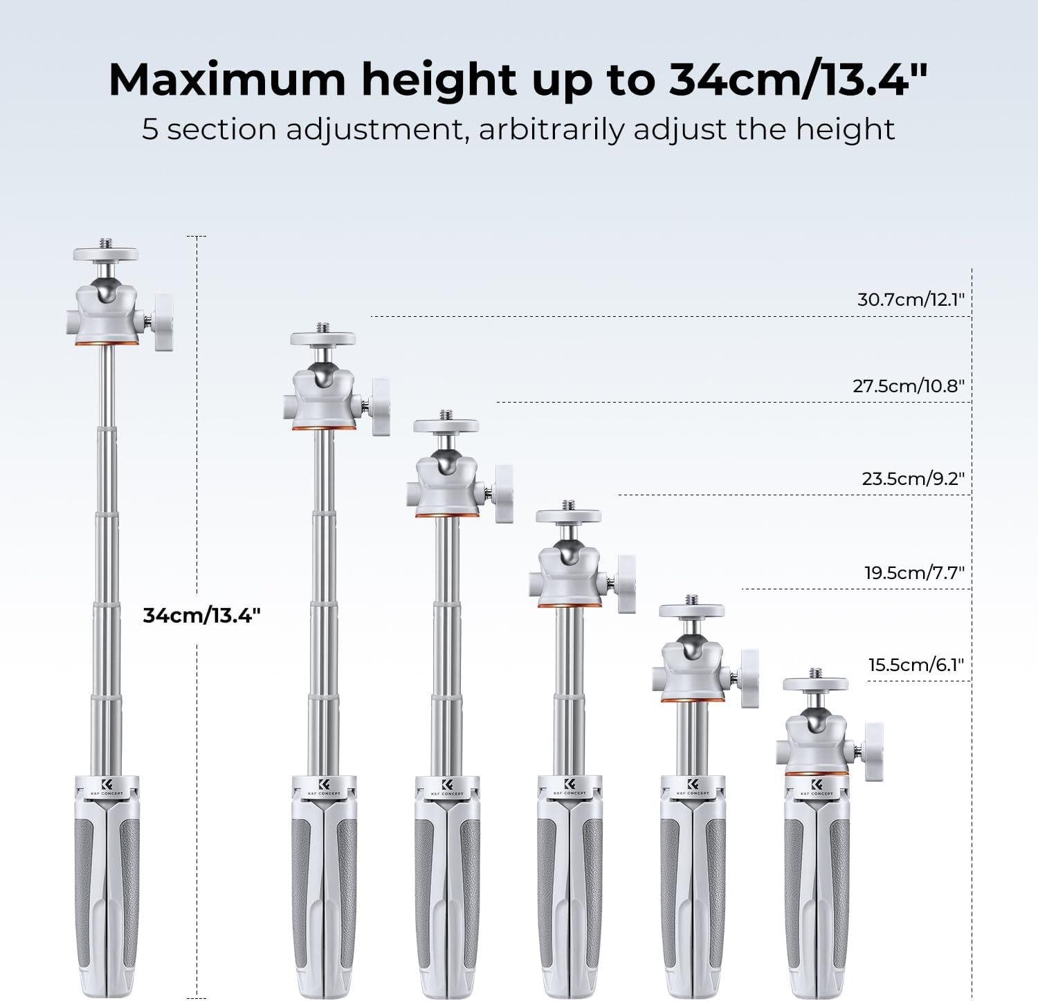 - Extendable & Adjustable: Capture the perfect shot with a flexible height range of up to 34cm (approx. 13.4 inches). The five-section legs adapt to your preferred shooting position effortlessly, ensuring adaptability to your creativity.