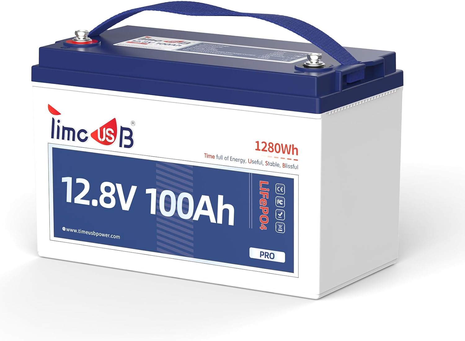 - 【2.6X Lightweight & Group 31 Compact Design】 Group 31 compact design, reduce the case size by 1/3 when compared to the standard 12.8V 100Ah lithium battery case. Furthermore, the Timeusb 12V 100Ah Pro LiFePO4 battery is 2.6X lighter than previously, makes it 55Wh/lb increased energy density. More adaptable in terms of battery system installation & application.