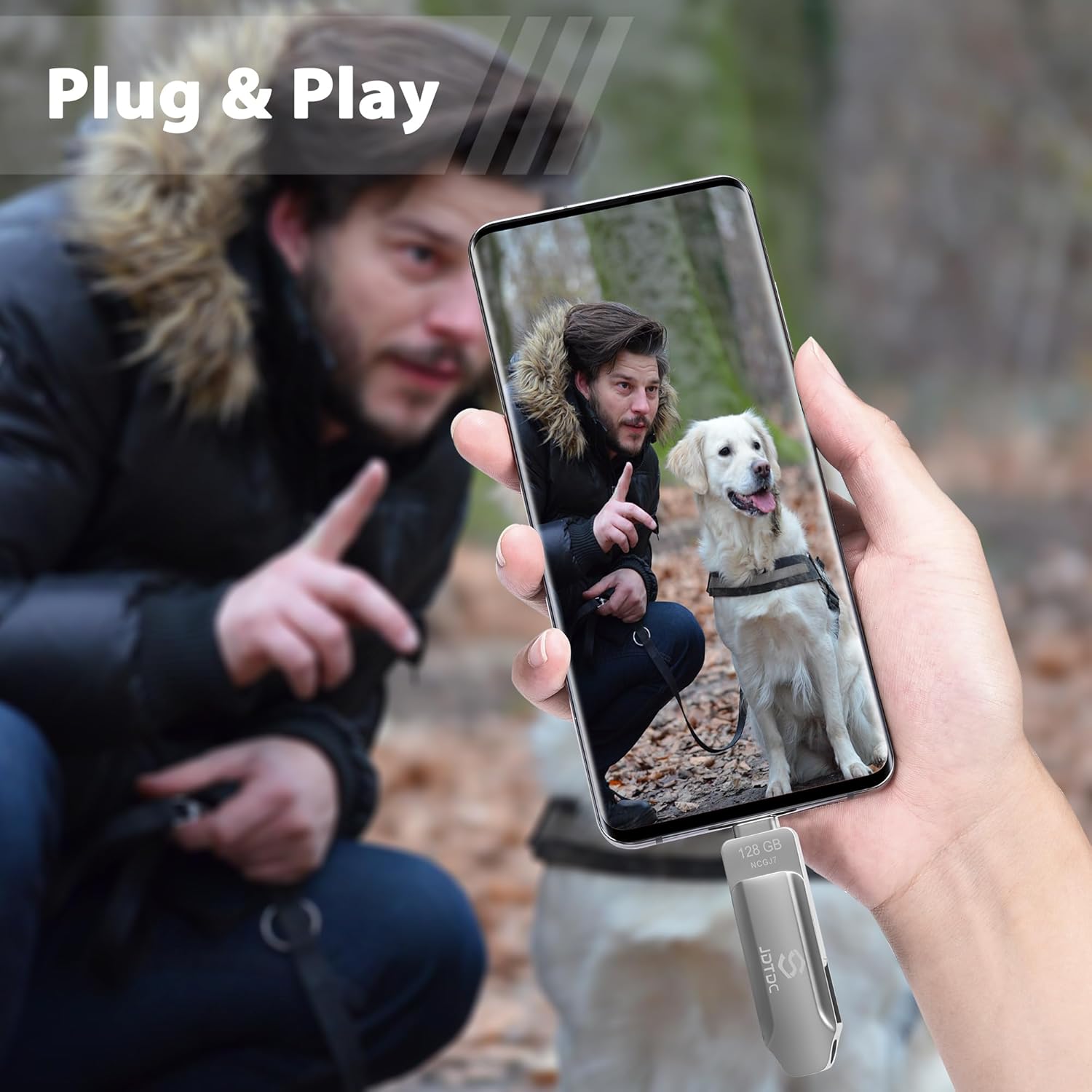 - Plug & Play Photo stick for Android PC: This photo stick is Plug & Play for Android PC quick data transfer with no app needed. Connect the usb c photo stick to your phone, it's recognized as external storage, allowing easy file access and management.