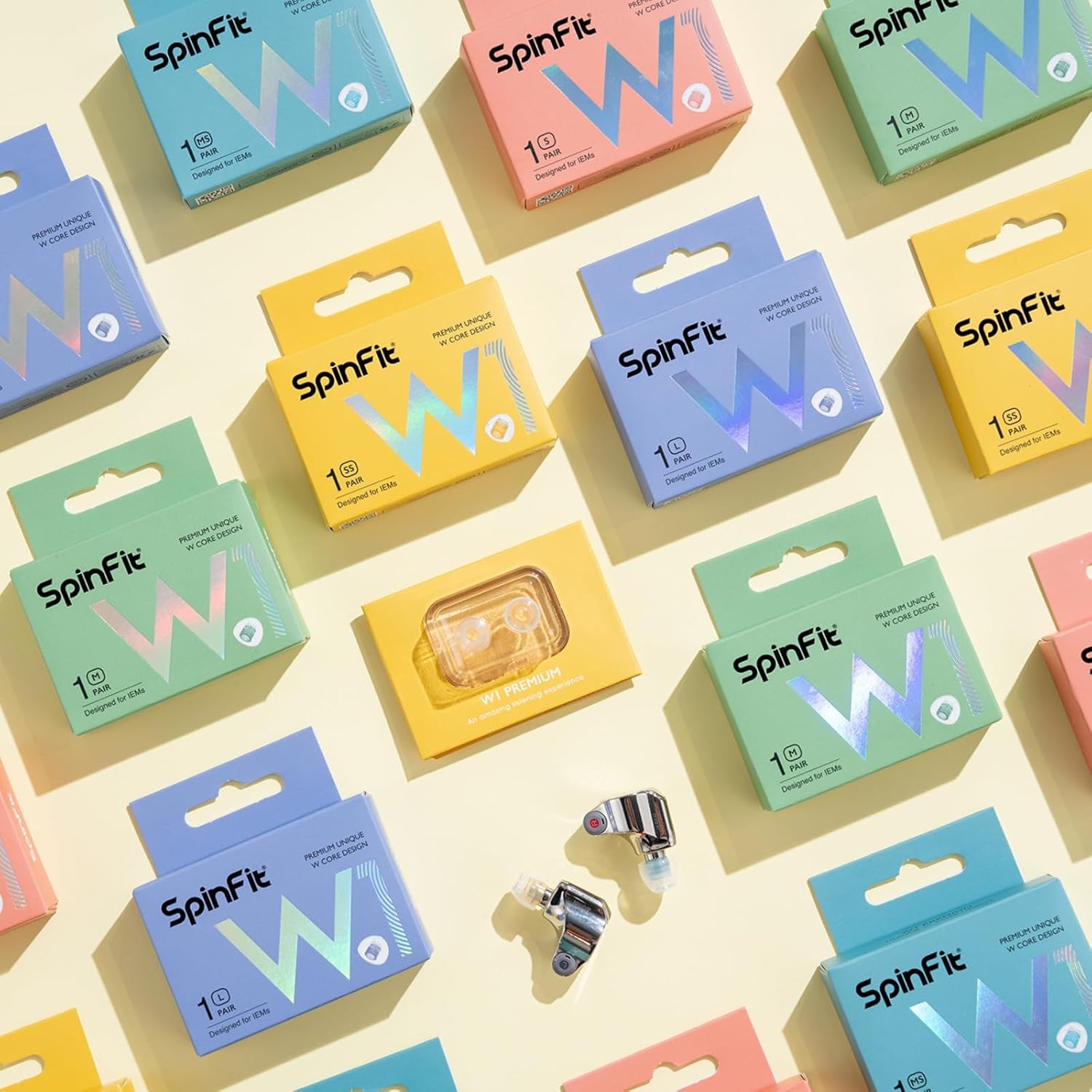 SpinFit W1 for IEM - M - Patented Medical-Grade Silicone Ear Tips, Double W-Shaped Tube Core, More Stability
