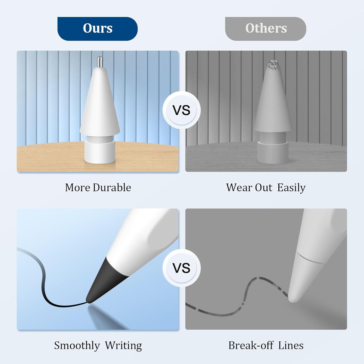 - 【Upgraded Fine Point Pencil Tips】Each package contains 2 POM tips and 2 metal tips,catering to your various needs. The POM tips closely resemble the original Apple Pencil 2nd Generation tips, offering durability and wear-resistance. The metal tips feature a rounded-edge design and longer length, allowing for precise control and a smoother writing experience. Improved welding technology ensures they are less prone to breaking, even after accidental falls or prolonged use.