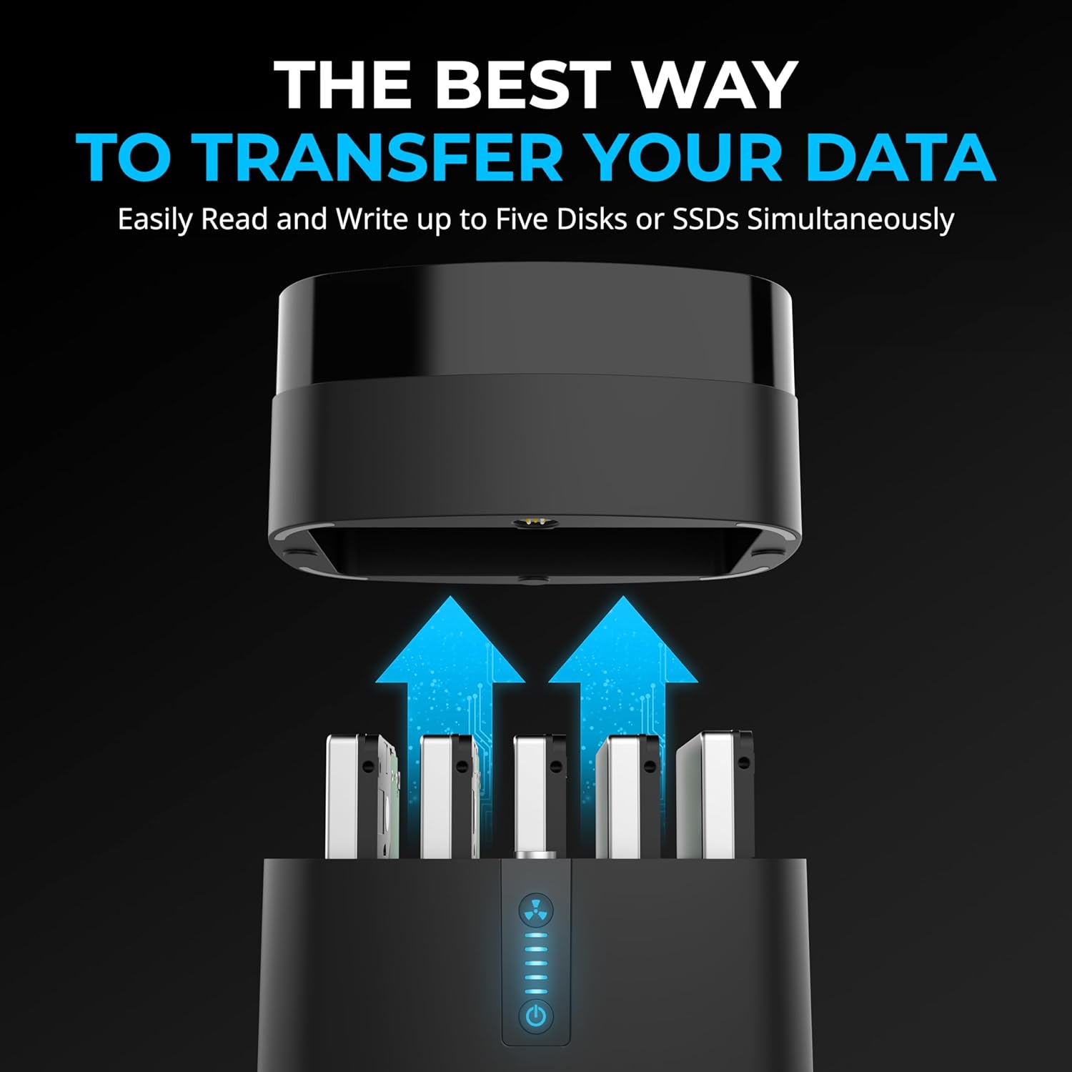 - Cool And Clear: With up to five drives loaded, sustained operation can produce excessive heat - fortunately, we have built-in active cooling with an 80mm fan. We know you sometimes need things quiet so this fan is switchable, too. LEDs, including individual lights for each bay, will keep you aware of drive, dock, and fan status.