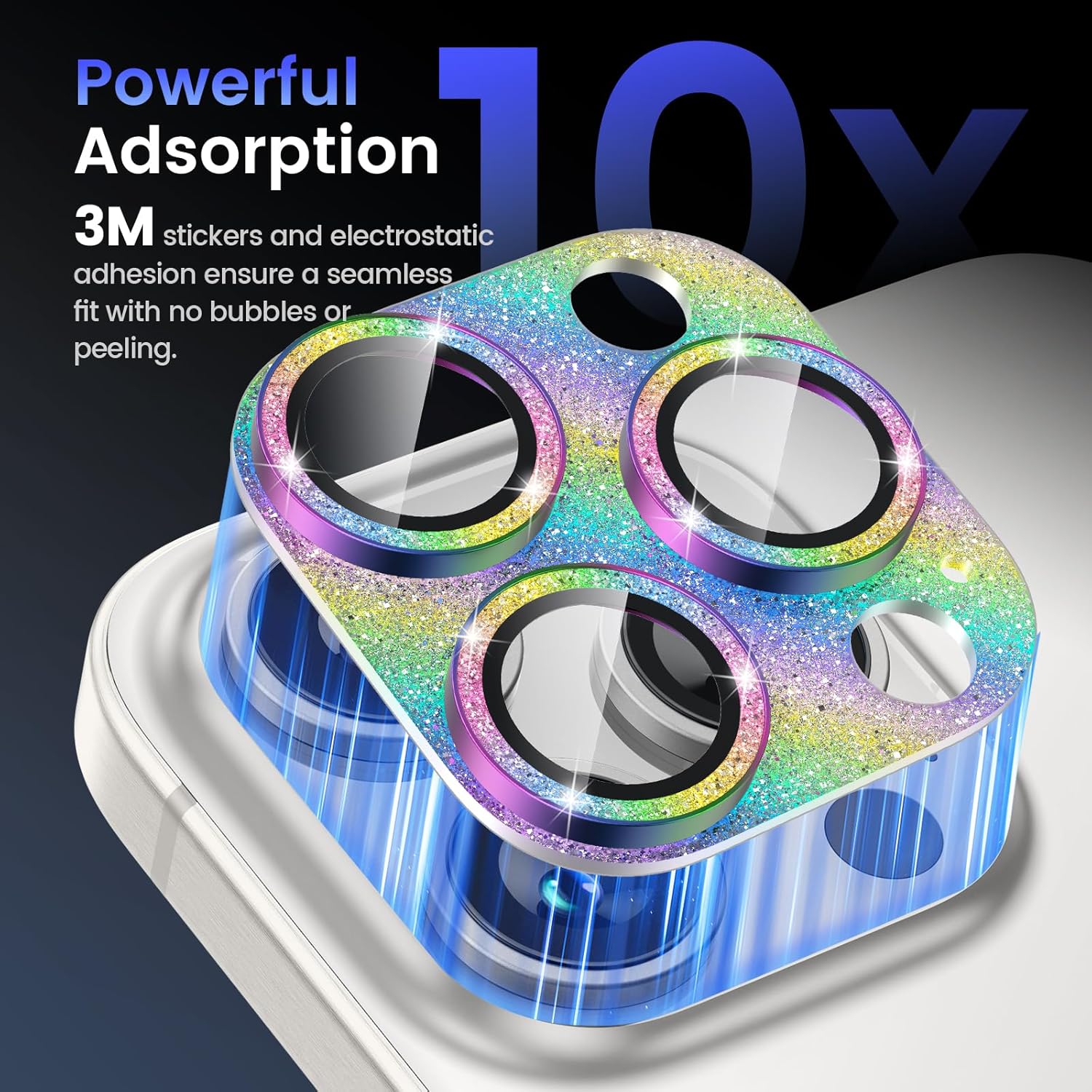 - Glitter Texture: Upgraded tempered glass camera screen protector cover built-in 3 single metal ring protector, which bling glitter reflects fascinatingly. It protects lens also makes it personalized decorations. Many colors are available for you to choose