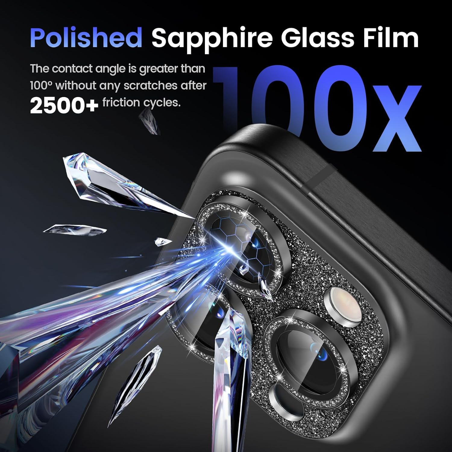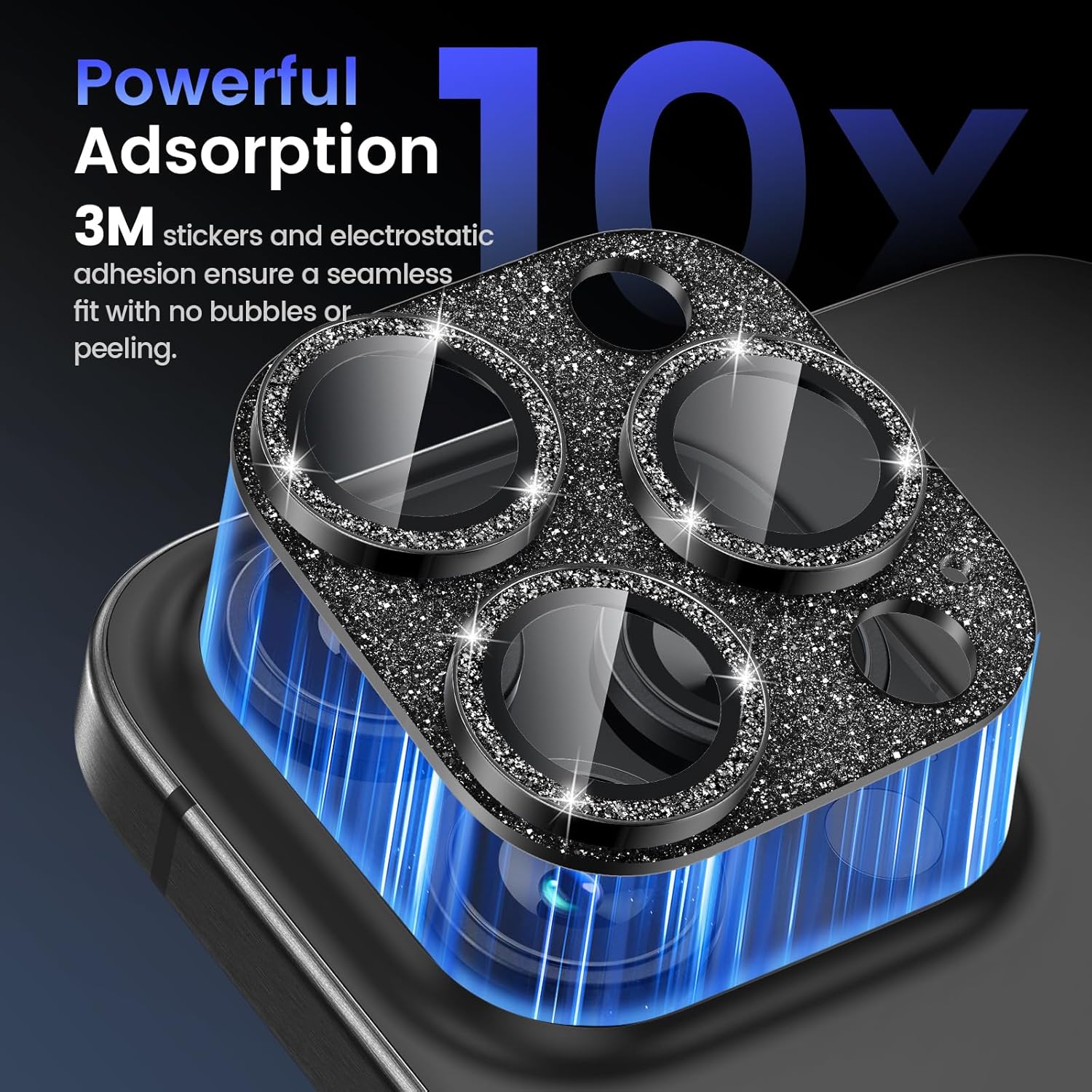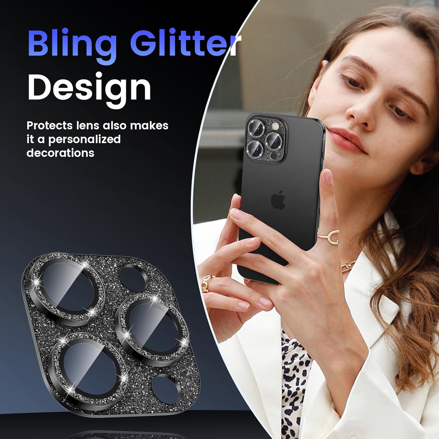 - Glitter Texture: Upgraded tempered glass camera screen protector cover built-in 3 single metal ring protector, which bling glitter reflects fascinatingly. It protects lens also makes it personalized decorations. Many colors are available for you to choose