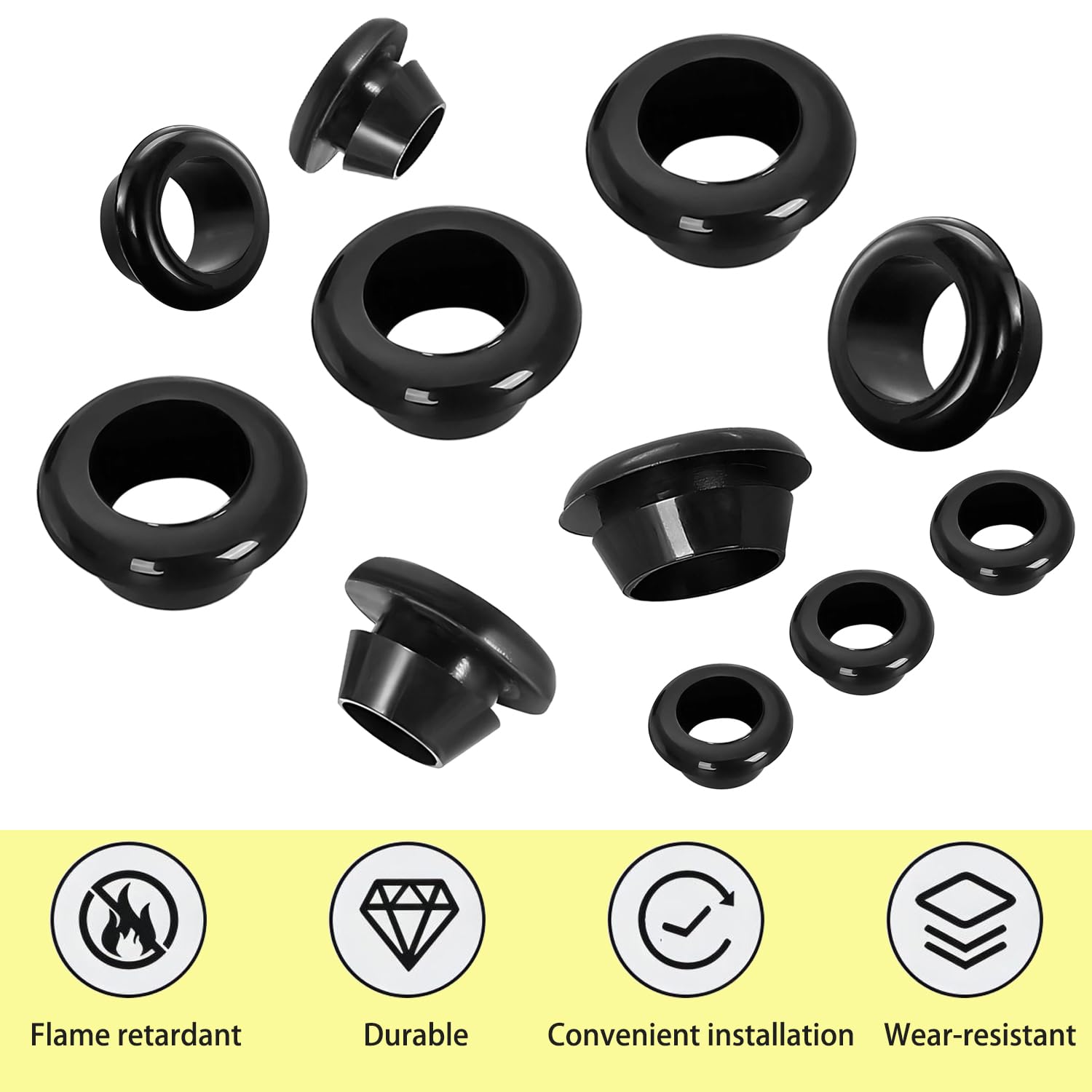 - Easy To Install: These grommets are designed for easy installation and snap on fixing holes. Protect cables or wires from sharp corners or edges and safely and effectively grip wires to avoid fire hazards.