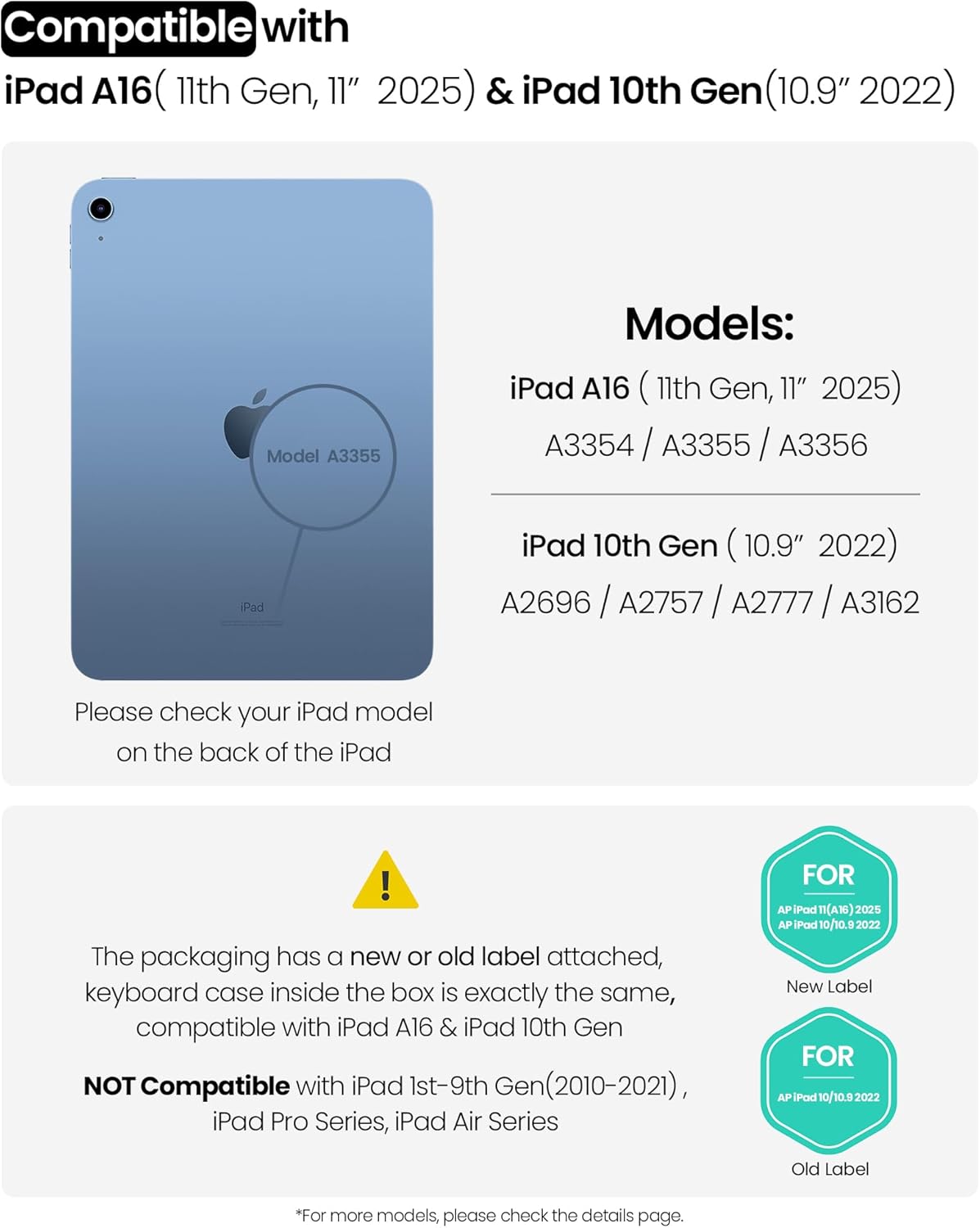 - Compatible Devices : iPad (A16) 11th Generation 2025, 11", iPad 10th Generation 2022, 10.9"