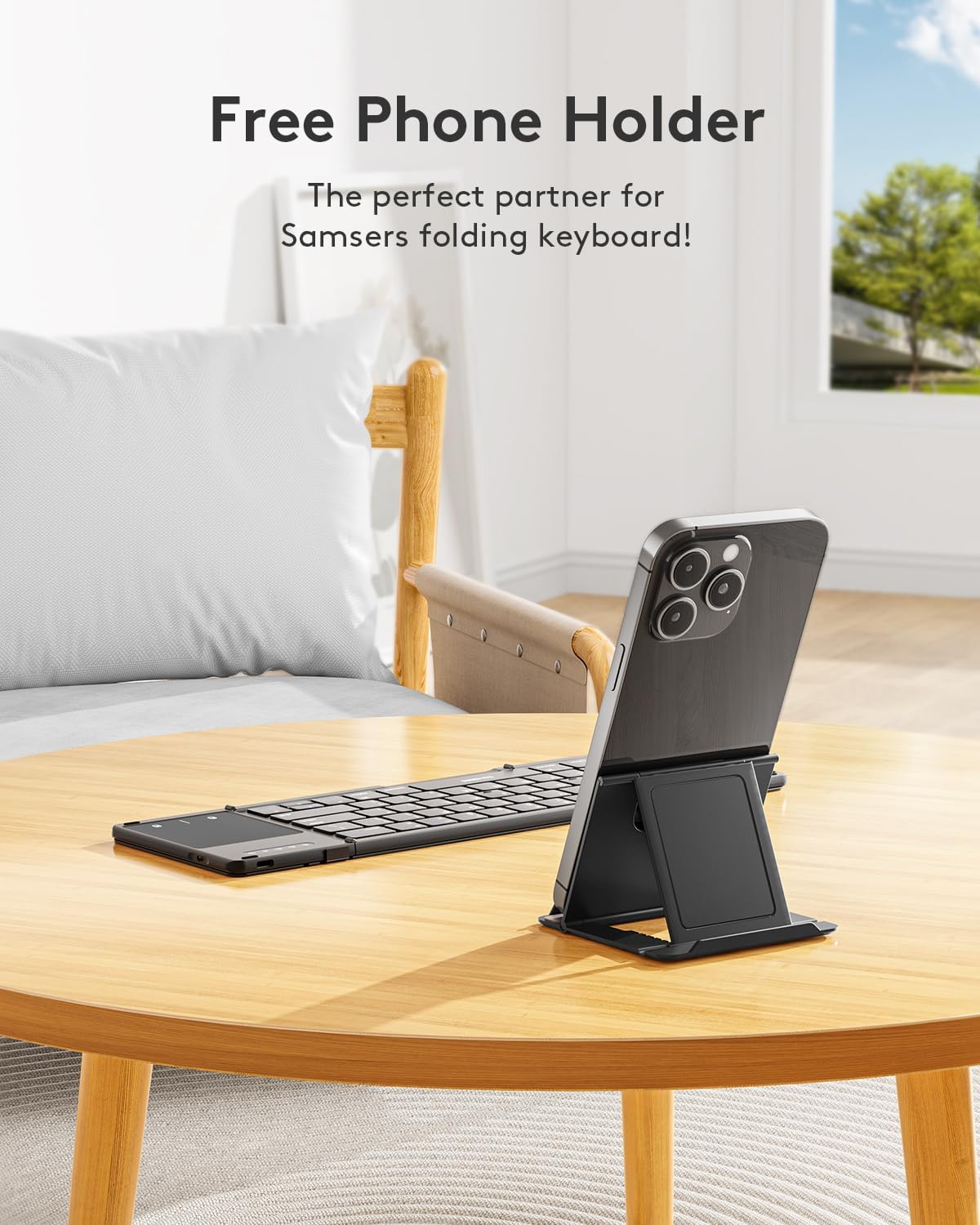 - 【Little Gadget & Big Convenience】 Samsers portable folding keyboard, only 8.4 ounces. Included are a nice velvet storage bag and an adjustable phone stand to accommodate mobile devices at various viewing angles. Palm-sized keyboard can be folded up magnetically and put in your pocket. Maximum convenience for you with minimum weight and size!