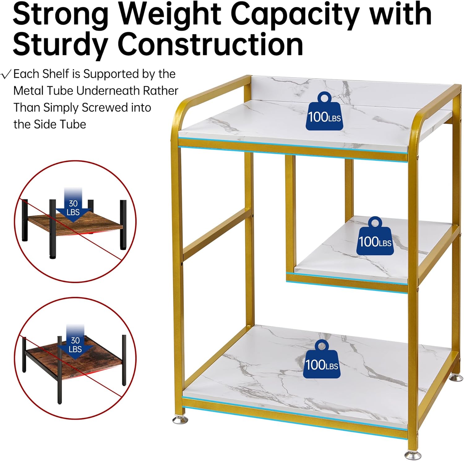 - 【Sturdy and Heavy Duty】Each shelf of this printer stand is supported by the robust steel tube underneath rather than simply screwed into the side frame, contributing to a solid construction and exceptional load capacity. High quality particle board with water- and wear-resistant surface and strong powder-coated steel tube frame makes it quite a durable stand table that you can count on for years.