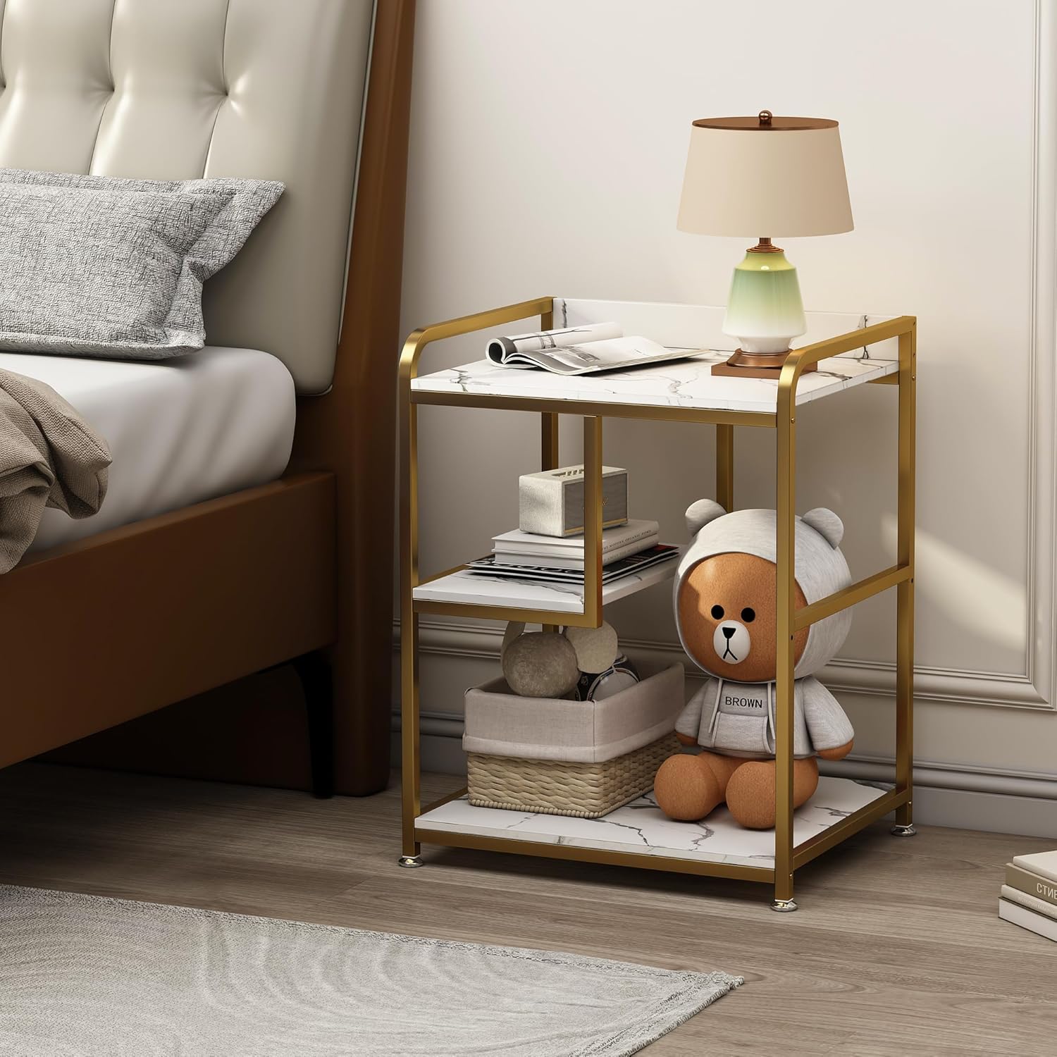 - 【Smooth Modern Appearance】The bright faux white marble shelf combined with stylish streamlined golden framework outlines the endless beauty of modernism, making it an appealing home office furniture, which stands apart from many other alternatives in the market.