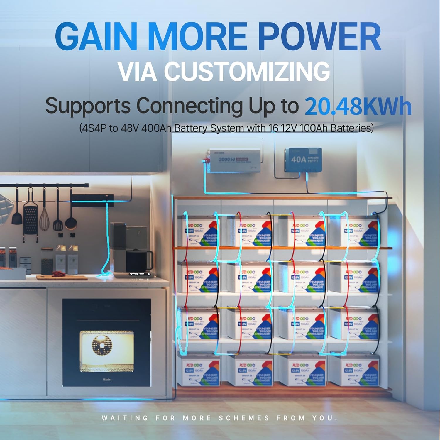 - 8X Life Cycles & Superior 100A BMS: Redodo 12V 100Ah Group24 lithium iron phosphate battery can be cycled up to 4000~1500 cycle times, which is 8 times than an SLA battery with 500 cycles. And this battery, built-in 100A BMS, supports 100A Max. continuous charge/discharge current, and has 1280W max. load power and 1280Wh max. output energy.