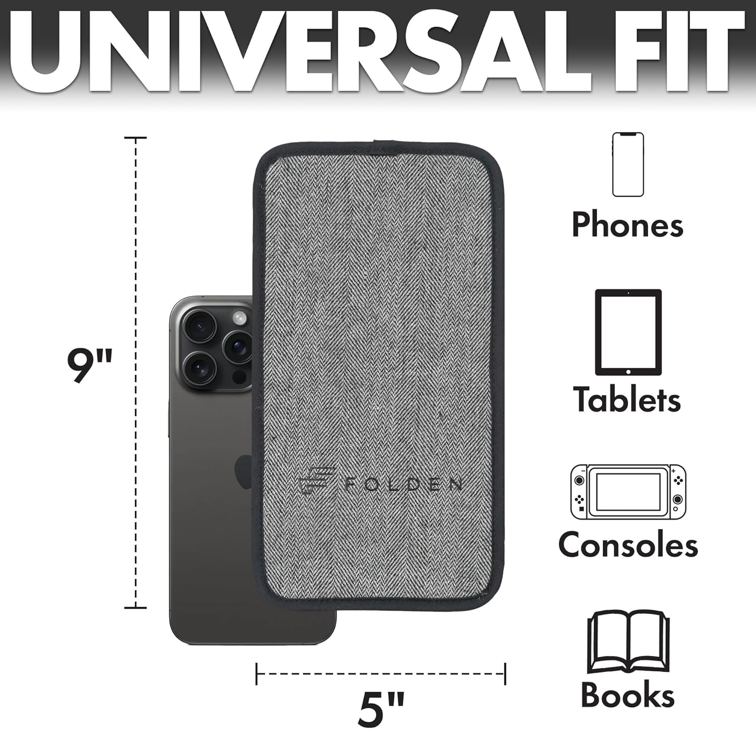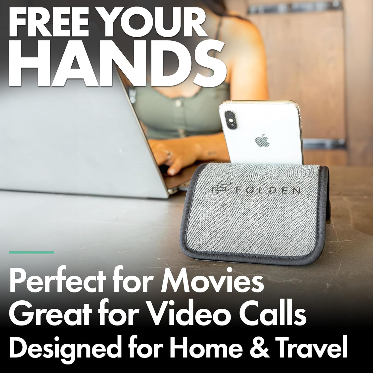 Folden Phone & Tablet Holder Stand 9x5” – Flexible Stand for Flying, Traveling, in-Flight, Zoom Video Calls, Books – Airplane Travel Essential, Compatible with iPhone, Android, Kindle (Tweed)