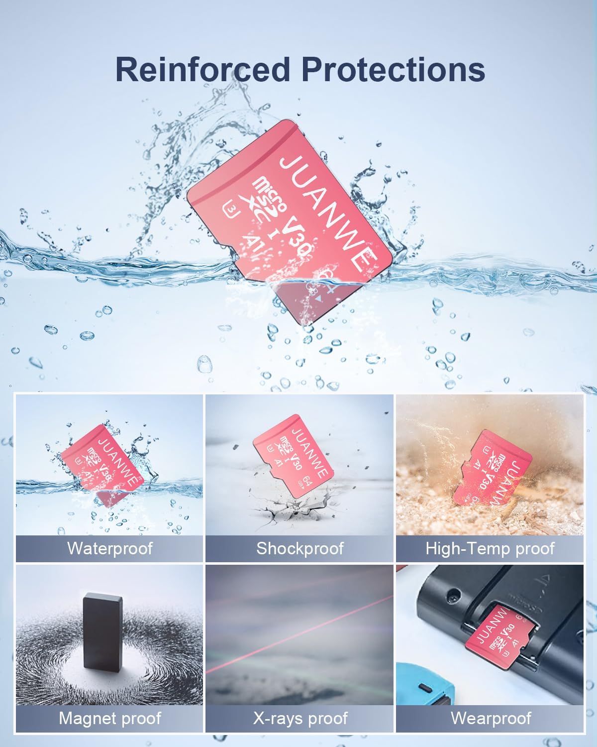 - Durable and Stable:This TF card adopts a multi-protection design, the internal data is not easy to lose, and the user's data is protected; Waterproof, temperature-resistant, shockproof, anti-magnetic, wear-resistant, anti-X-ray