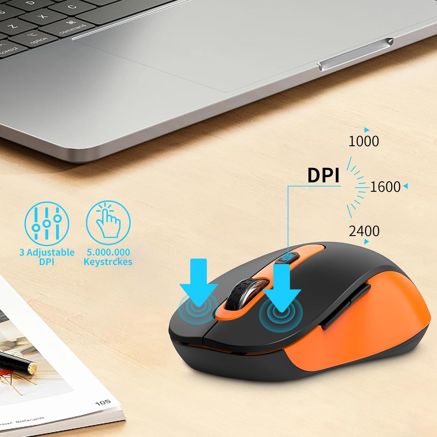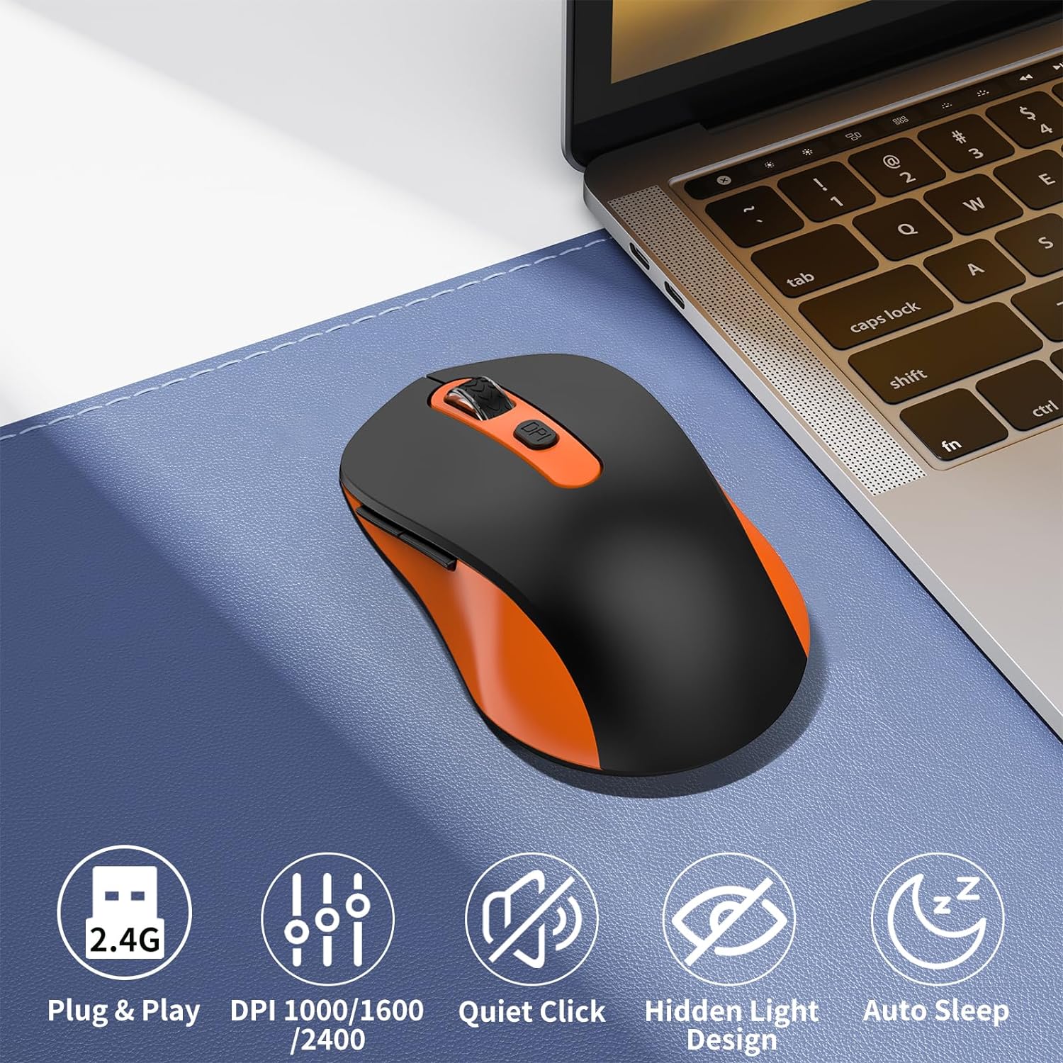 Wireless Mouse for Laptop, PC, Chromebook, Mac, MacBook, Silent Mouse with USB Nano Receiver, Side Button, 2400 DPI, Anti Slip Roller, 6 Button Ergonomics Cordless Computer Mice - Black Orange