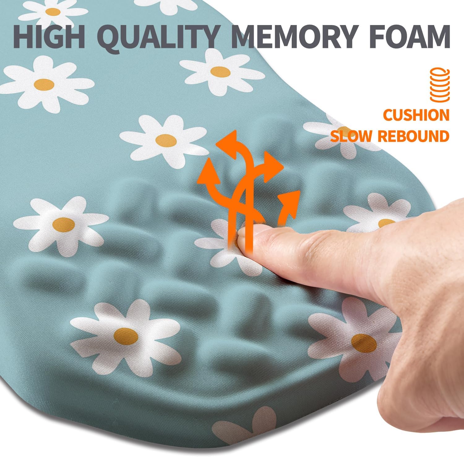 Ergonomic Slope Mouse Pad Wrist Support, Wrist Rest Mousepad for Carpal Tunnel Pain Relief with Massage Bulge and Slow Rebound Memory Foam (12x8 inch, White Flowers)