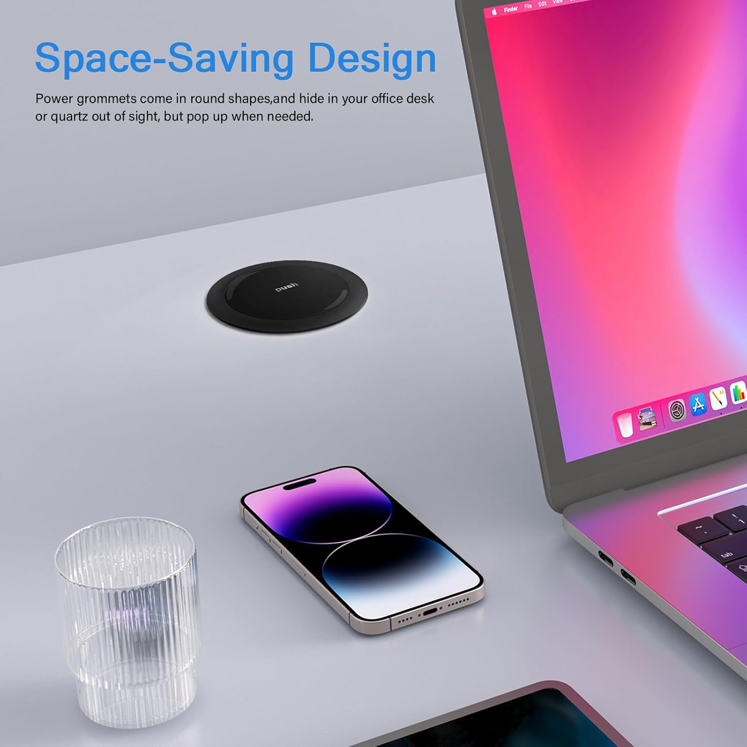 Pop up Outlet for Countertop,65W USB C Fast Charging Port,2.5-inch Hole Desktop Power Grommet,Recessed Power Strip,4 Outlets 4 USB Ports,15Amp Tamper Resistant Receptacle,ETL Listed (Black)