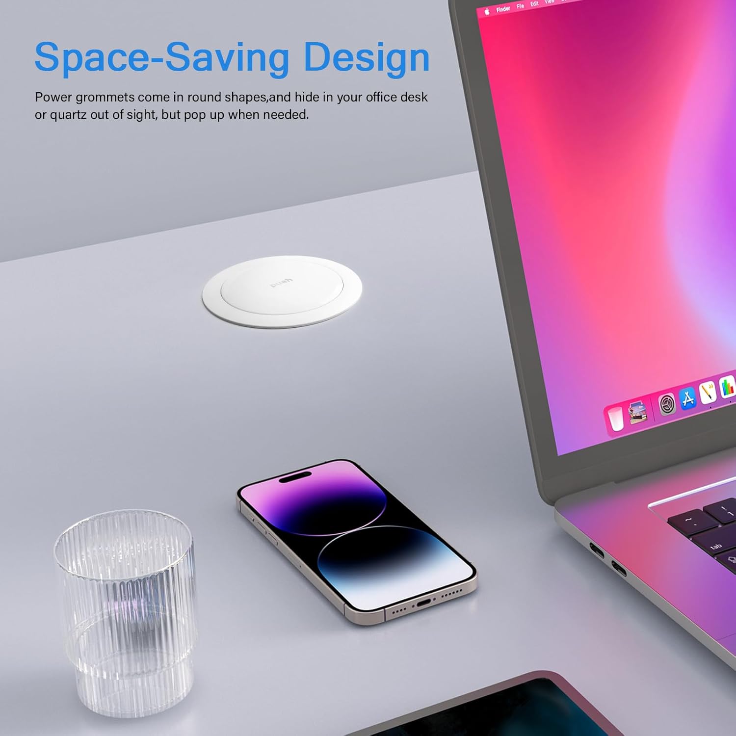 - Multi-Device Charging Hub: The double-sided accessibility of this pop up power outlet ensures that up to 8 devices can recharge without hassle. Offering a smart mix of 4 AC outlets, 2 USB-C, and 2 USB-A ports, your workspace can stay organized and your devices powered, all via a single, streamlined electric receptacle outlet.Type-C ports support maximum 65W output.65W fast charging with GaN tech.