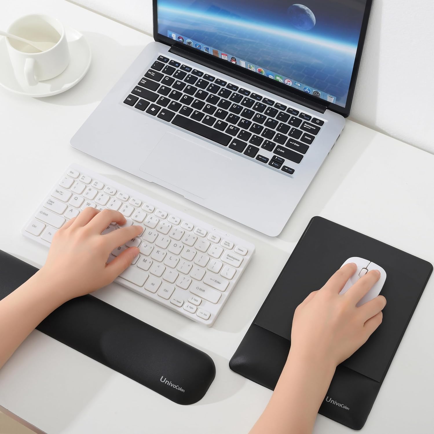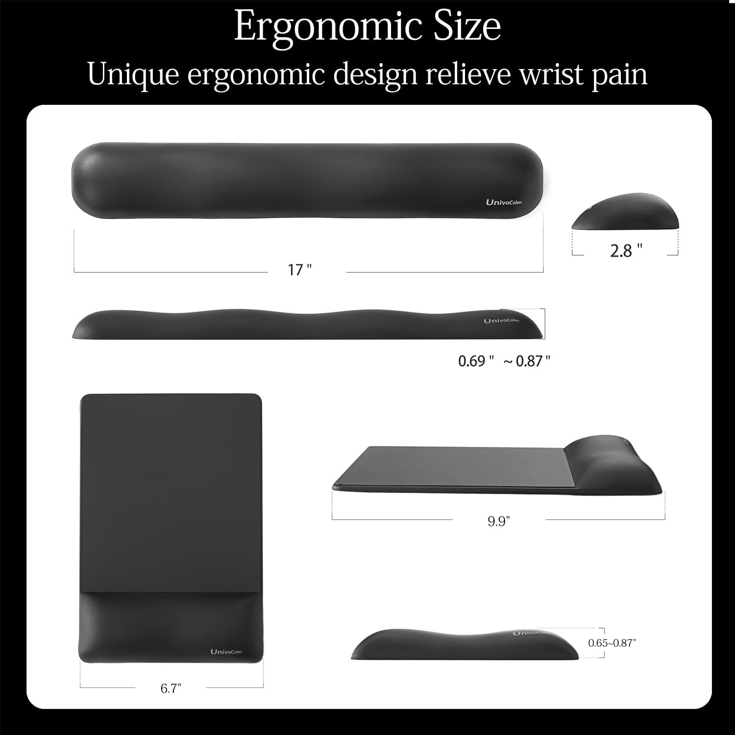 - [Ergonomic Wave Design]: Designed with a wave-like contour, this set of keyboard wrist rest and mouse pad perfectly adapts to the natural movement of your wrists, ensuring optimal support and reducing strain, fatigue, and discomfort.Non-slip rubber base keeps the pad firmly in place, without worrying about it moving or slipping.