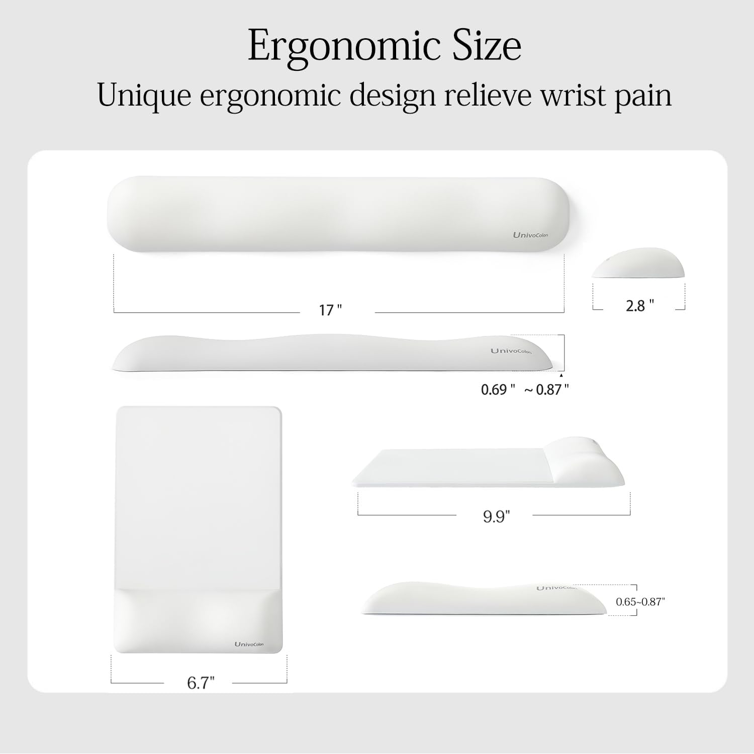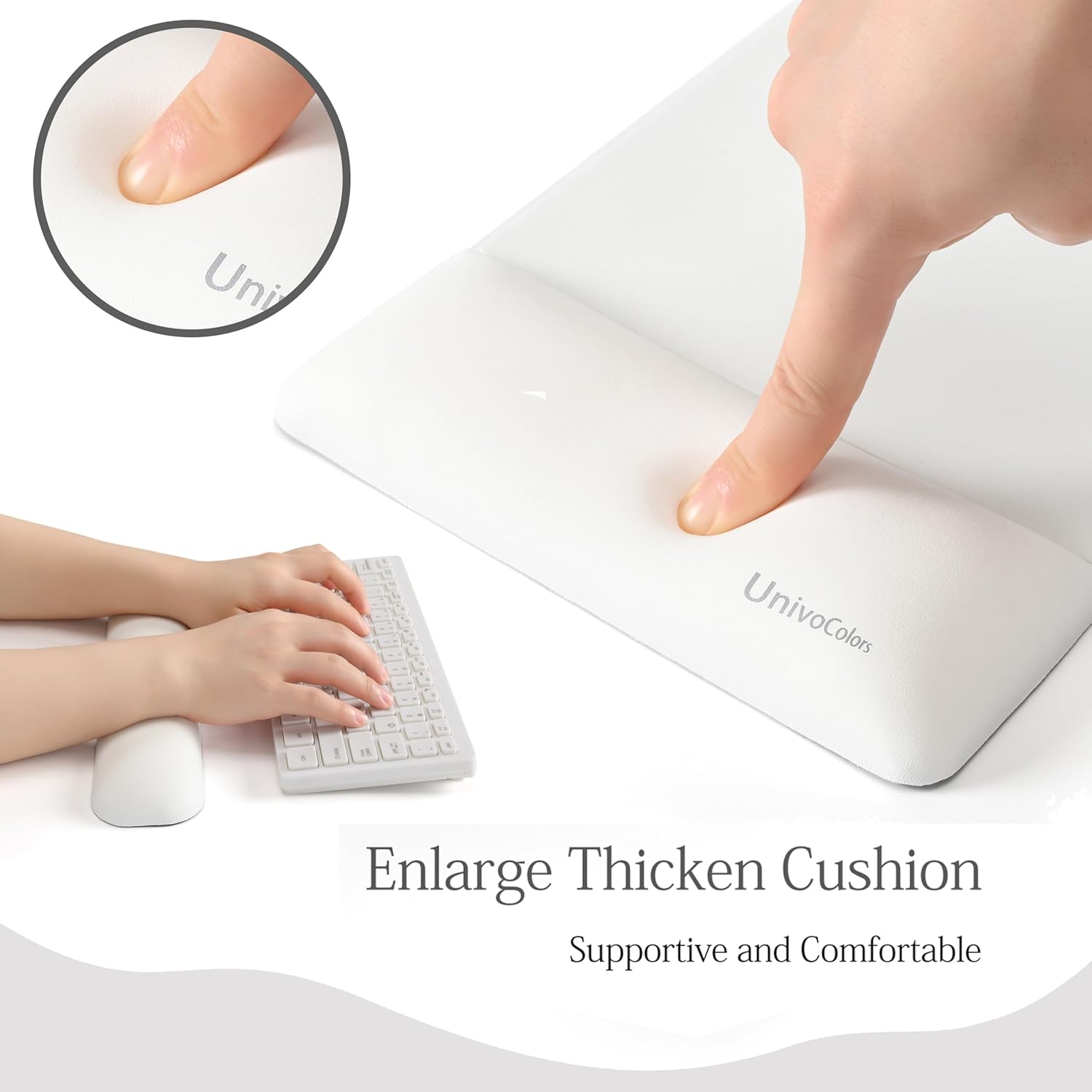 - [Original Design]:"Wave Melody" wrist rest mouse pad and keyboard wrist rest set made inside of filled with Slow rebound memory foam and wrapped with and silky artificial sheepskin surface, and PE mouse sliding Panel,experience more comfort while you work or play game for longer hours use.