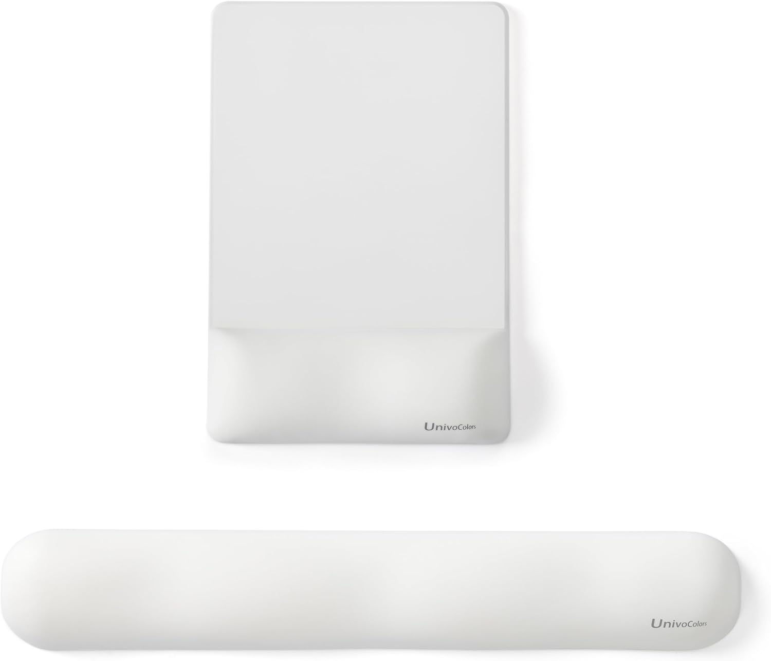 UnivoColors Design-Wave Set of Keyboad Wrist Rest & Mouce Pad,Artificial Sheepskin+Memory Foam+Ergonomic+Anti-Slip Gel, Resilience Support During Work and Gaming,Keyboard Accessory,White