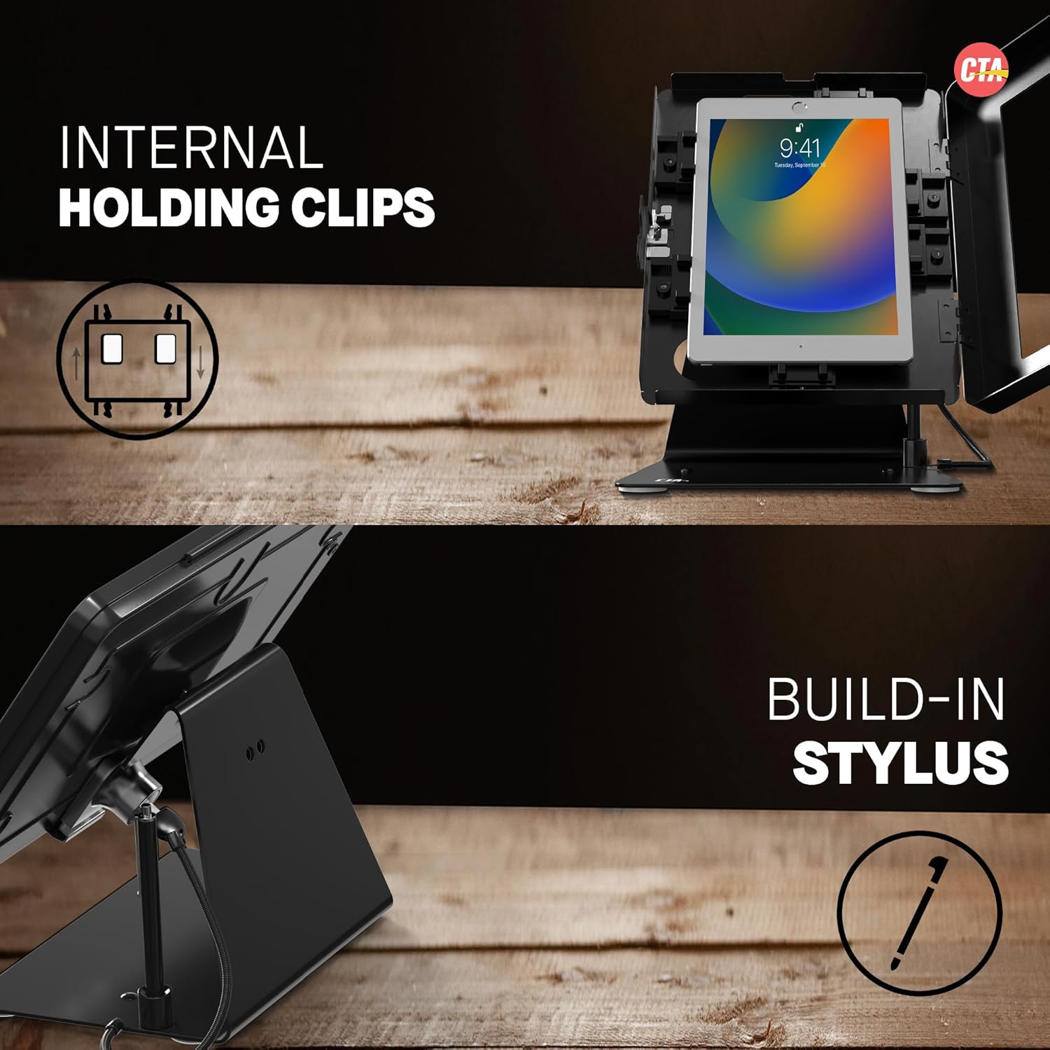 Desktop Anti-Theft Stand – CTA Kiosk Stand with Stylus, Tether, and Aluminum Enclosure for iPad 11th Gen A16 11” - 10th Gen 10.9” - Air 4th & 5th Gen - 11” Pro & More - Black (PAD-DASB109)