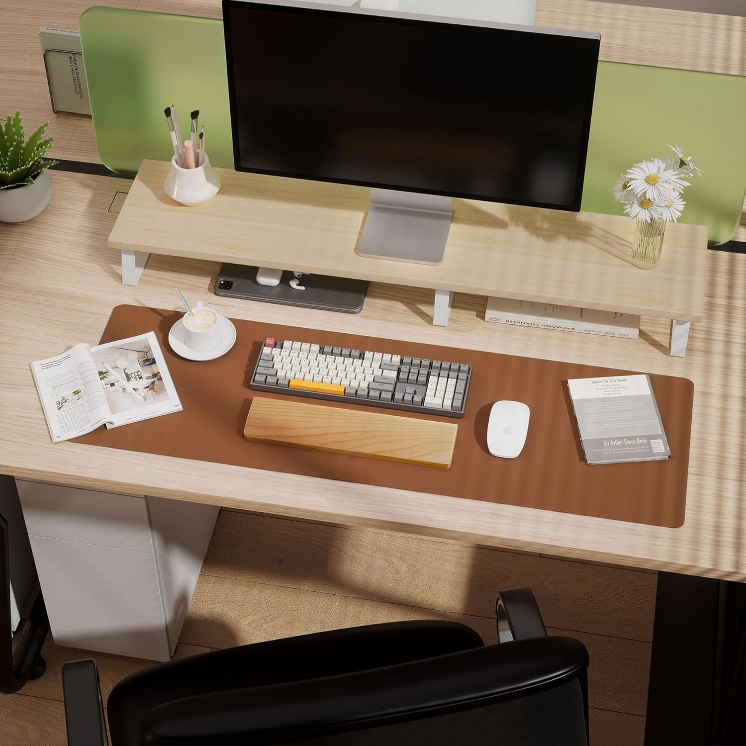 - Protect Your Desk: Utilizing durable PU Leather material, our desk pad provides reliable protection against scratches, stains, spills, heat, and scuffs. With a variety of colors available, you can easily change the ambiance of your workspace. The expansive surface doubles as a large mouse pad, ensuring a comfortable resting space for your hands during writing, typing, and mouse usage. A essential addition to your office or study supplies.