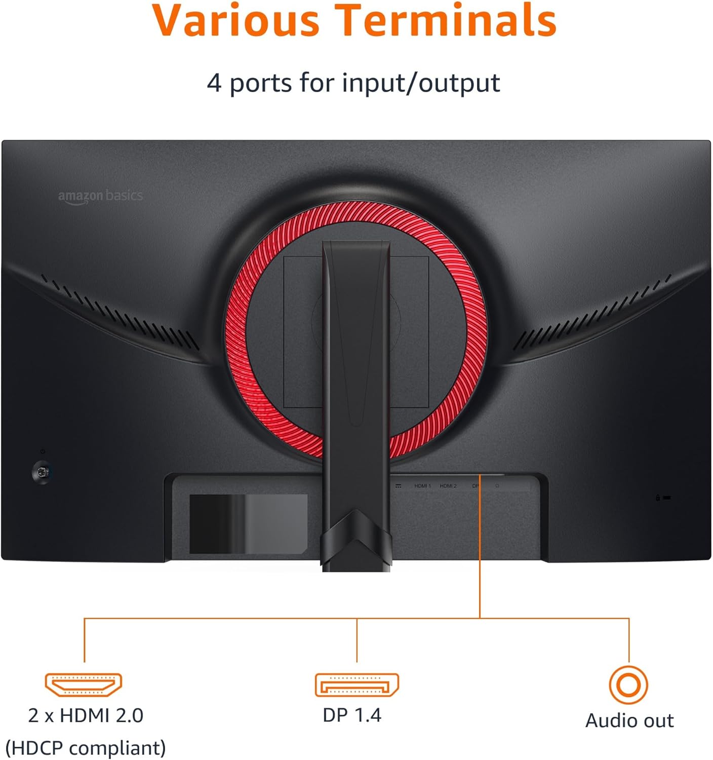 Amazon Basics 27 inch Gaming Monitor, FHD 1080P, 165Hz, VESA Compatible, Adaptive sync, 1ms Response, Black