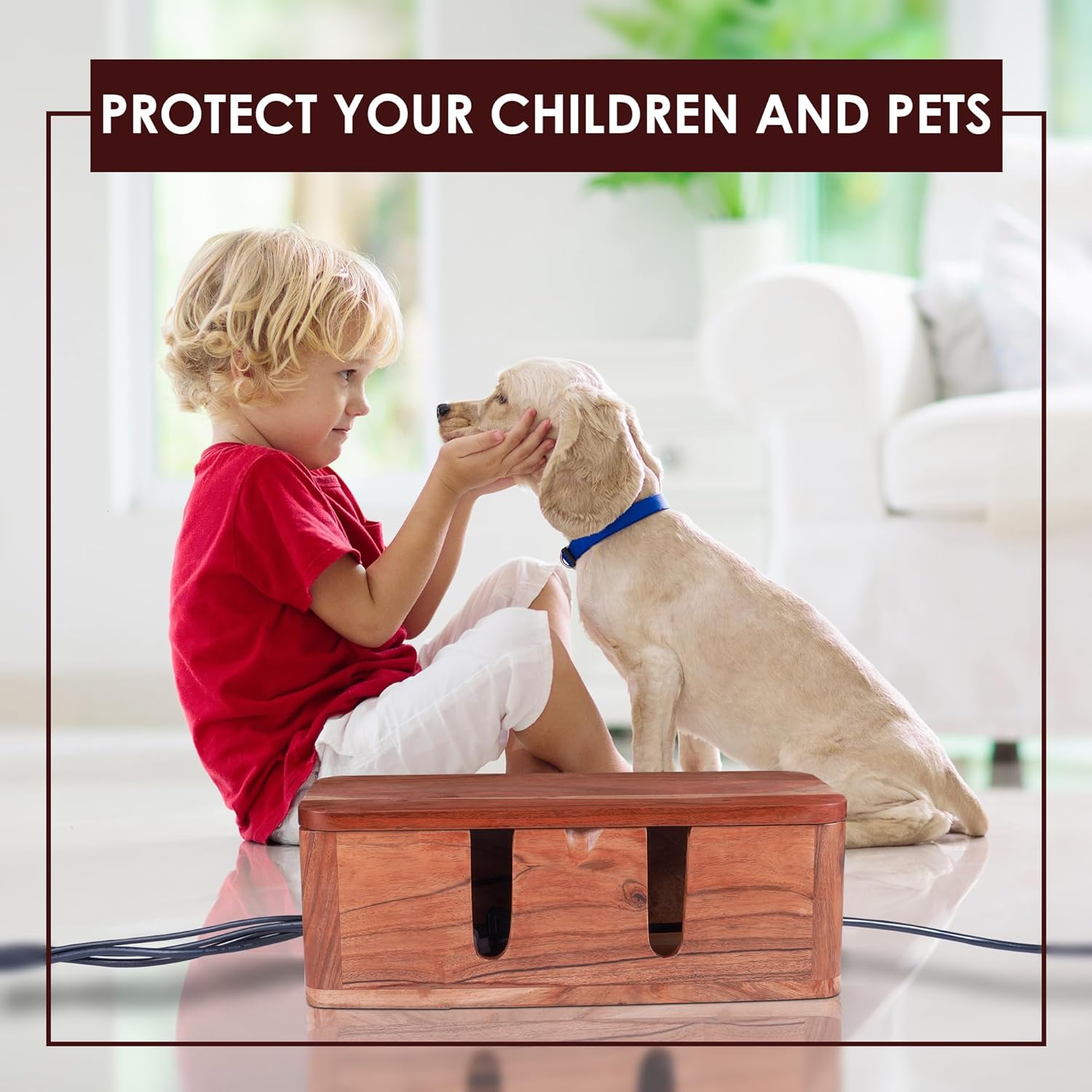 - DESIGNED WITH LITTLE ONES AND FURRY FRIENDS IN MIND: Featuring a magnetic lid and ventilation holes, this cord hider box power strip cover helps protect kids and pets