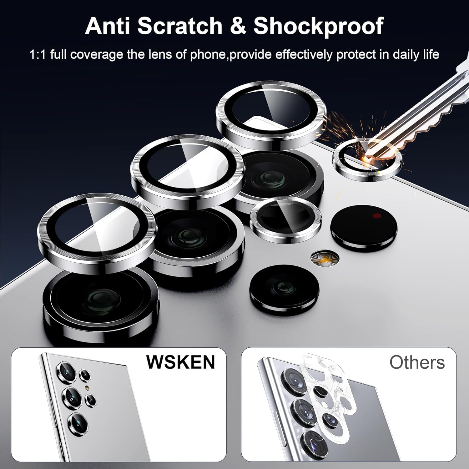 WSKEN for Samsung Galaxy S24 Ultra Camera Lens Protector, Ultra Thin Scratch Resistant 9H Tempered Glass with Aluminum Metal Circle Camera Screen Protector Cover Accessories, Silver