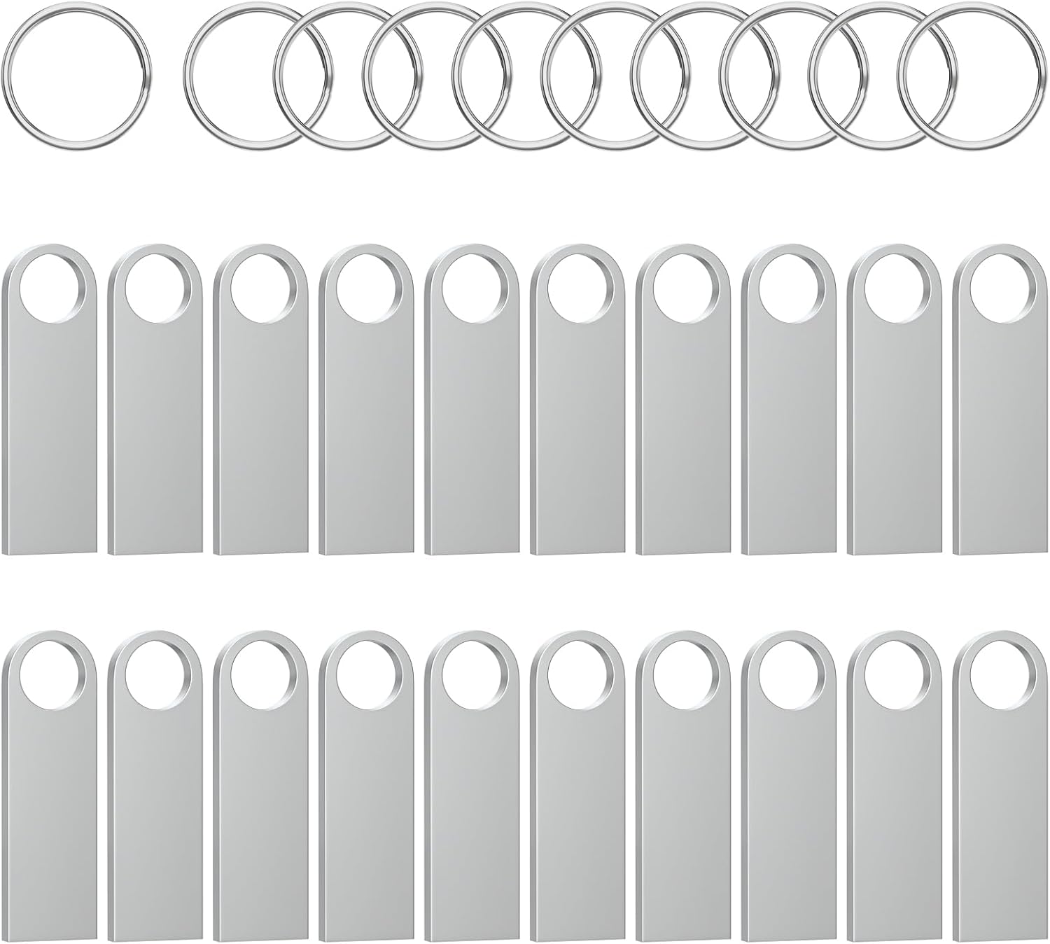 ABLAZE 8GB Flash Drive 20 Pack, Metal USB 2.0 Thumb Drives with Keychains USB Sticks Pendrives (Sliver)