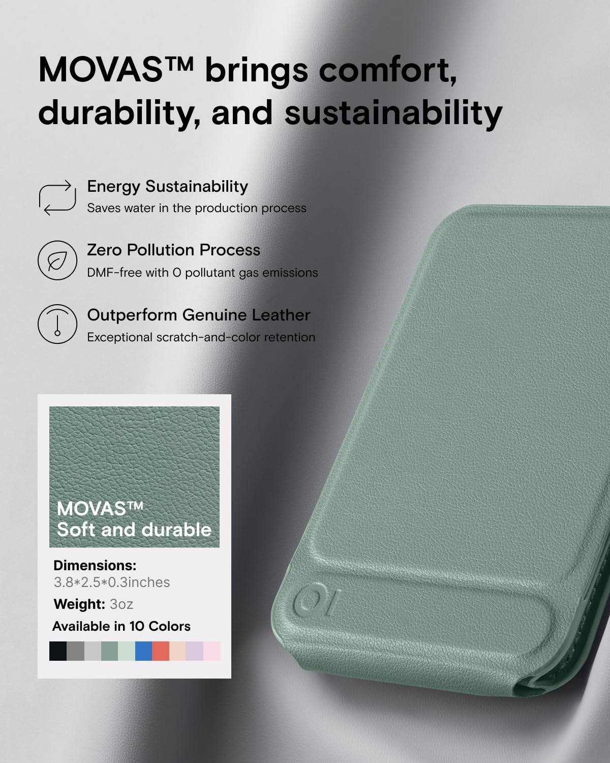 - Soft and durable - Made with MOVAS, the revolutionary vegan leather, that combines a silky touch and resistance to everyday dirt and scratches.
