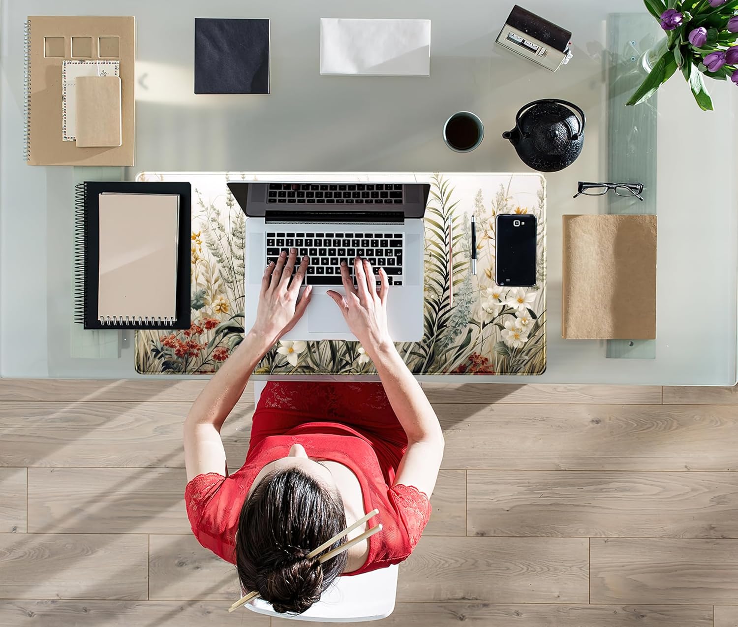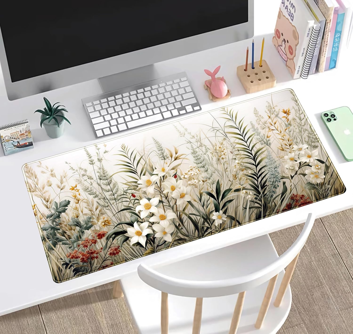 Beige Aesthetic Sage Desk Mat Cute Watercolor Flowers Mouse Pad Desk Pad, XXL Large Extended Gaming Anime Mousepad Big Keyboard Mouse Mat, Home Office Desktop Decor Deskpad for Women 31.5x15.75 in