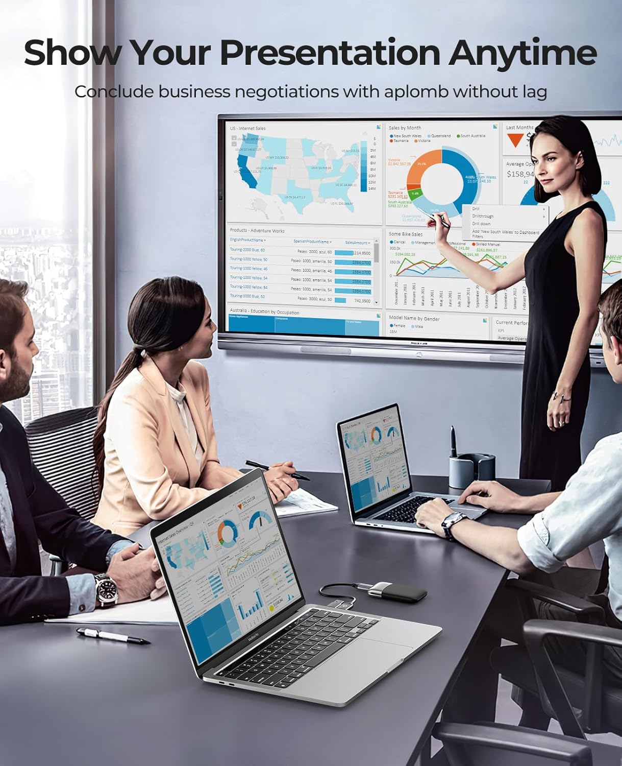 - Multi-device and Multi-system Compatibility: This external SSD compatibility with Android, Windows, IOS. Included 2 in 1 USB C cable allows compatibility with USB A port devices and USB C devices (smart phones, PC, Laptops and iPad ect).